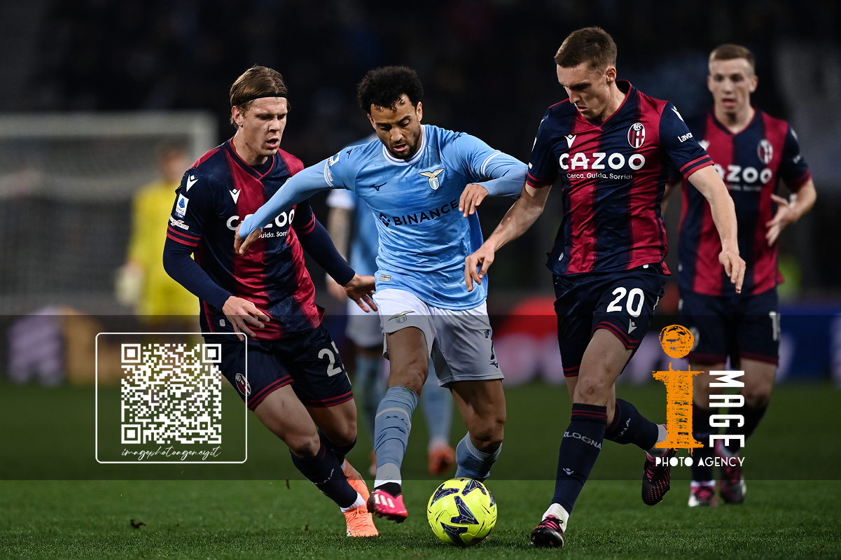 Mg Bologna 11/03/2023 - campionato di calcio serie A / Bologna-Lazio / foto Matteo Gribaudi/Image Sport nella foto: Felipe Anderson-Michel Aebischer-Niklas Pyyhtia