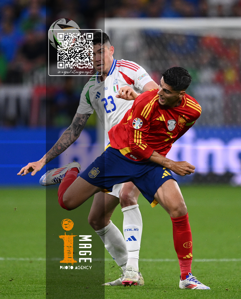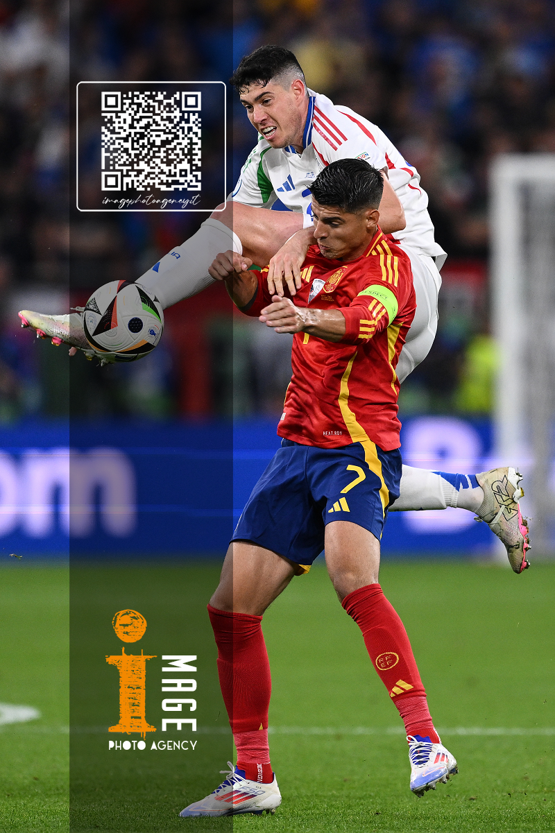 Mg Gelsenkirchen (Germania) 20/06/2024 - Euro 2024 / Spagna-Italia / foto Image Sport nella foto: Alvaro Morata-Riccardo Calafiori