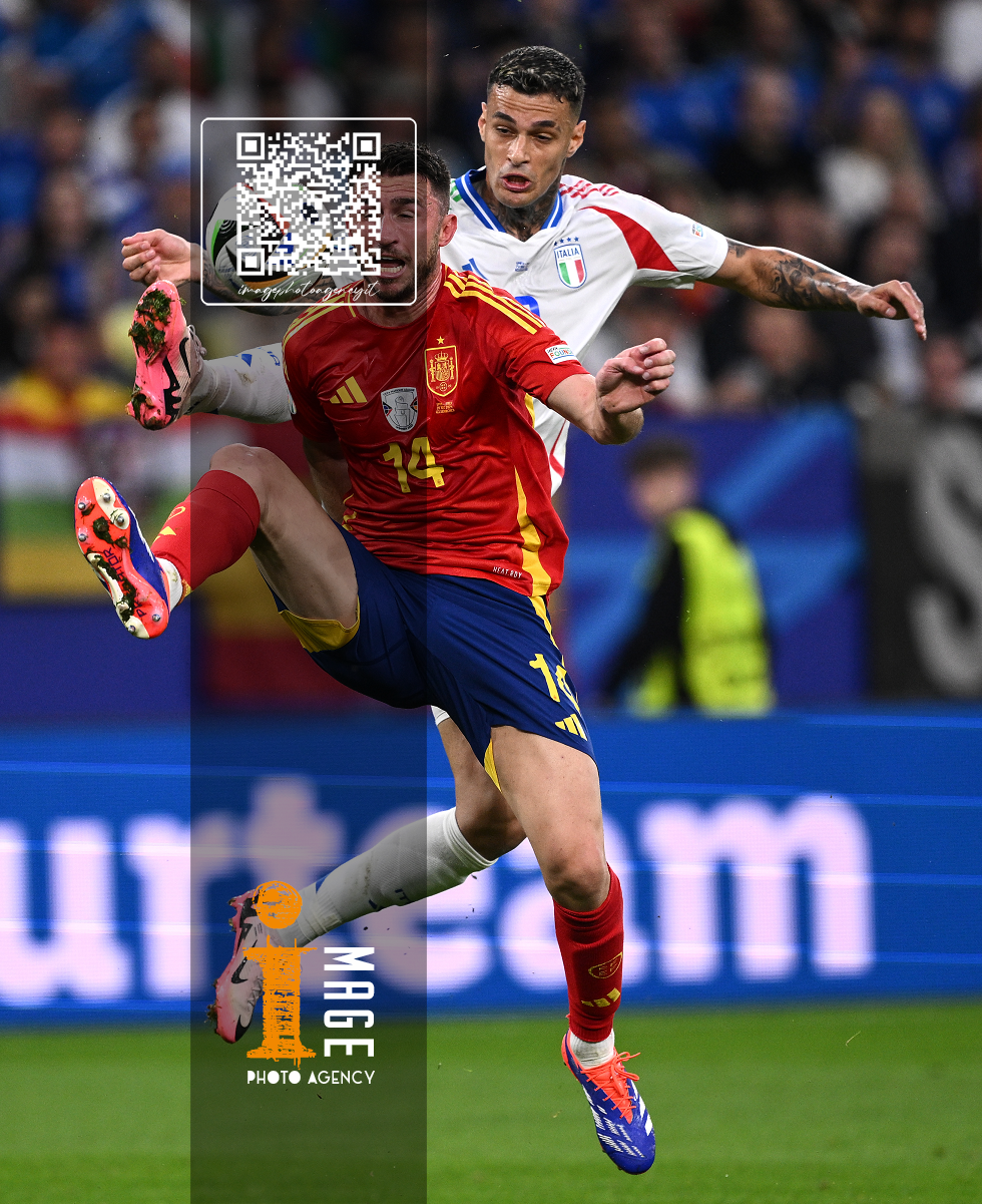 Mg Gelsenkirchen (Germania) 20/06/2024 - Euro 2024 / Spagna-Italia / foto Image Sport nella foto: Aymeric Laporte-Gianluca Scamacca