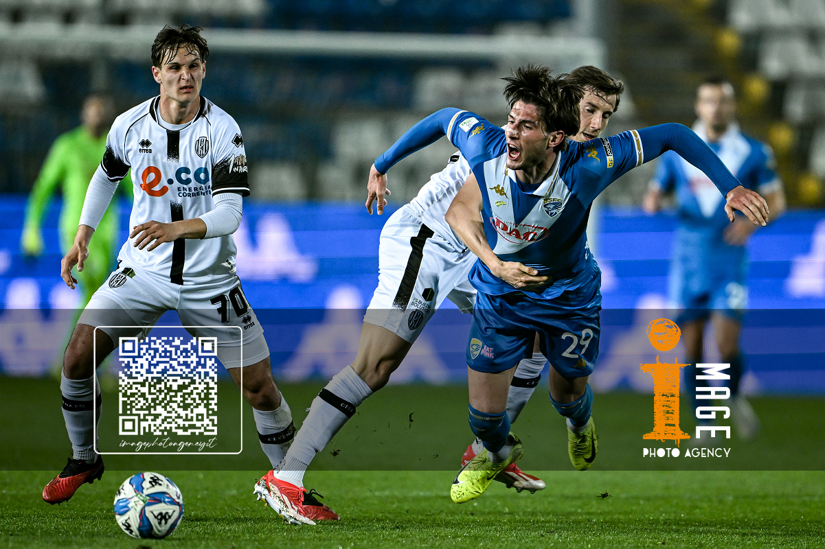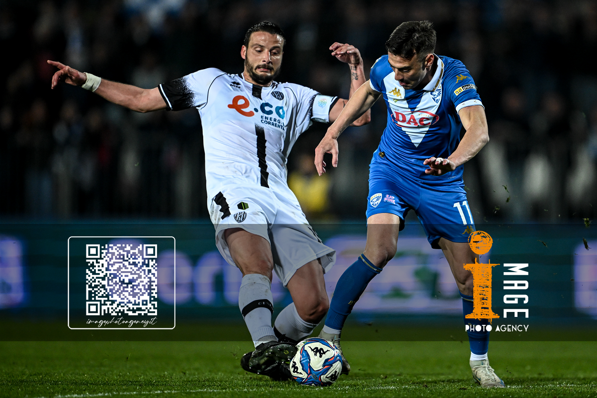 Cm Brescia 08/03/2025 - campionato di calcio serie B / Brescia-Cesena / foto Cristiano Mazzi/Image Sport nella foto: Gabriele Moncini-Matteo Francesconi