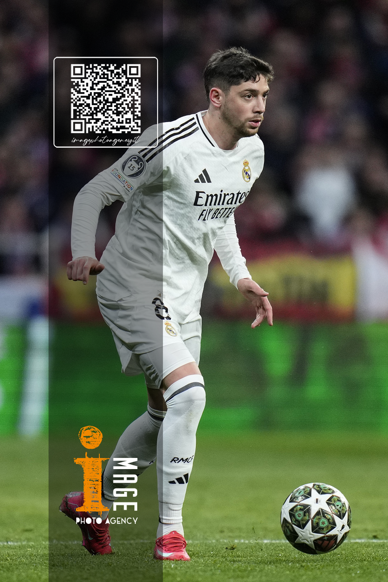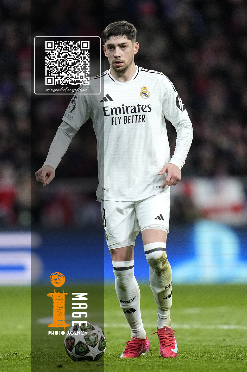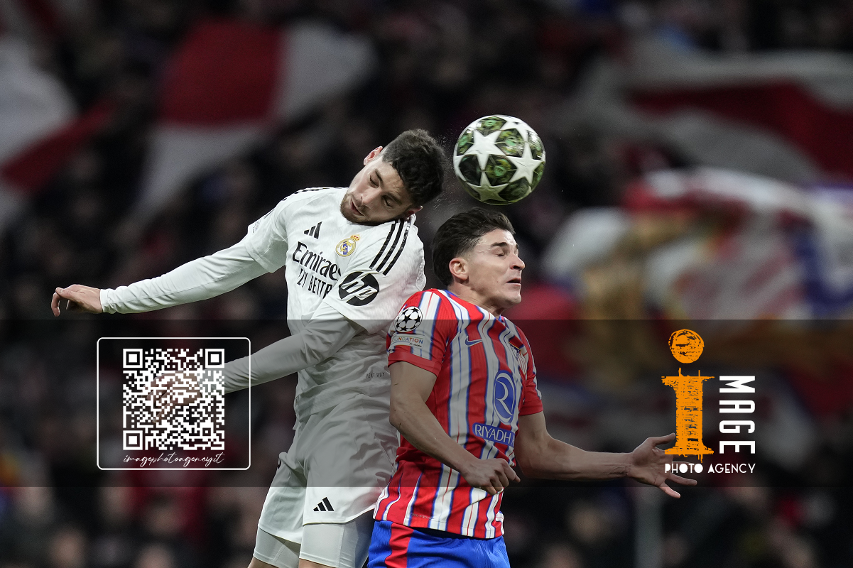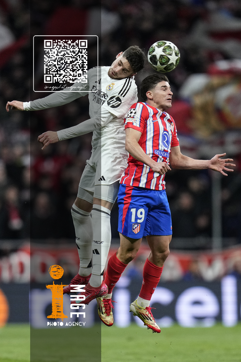 Cc Madrid 12/03/2025 - Champions League / Atletico Madrid-Atletico Madrid / foto Cesar Cebolla/Image Sport nella foto: Federico Valverde-Julian Alvarez