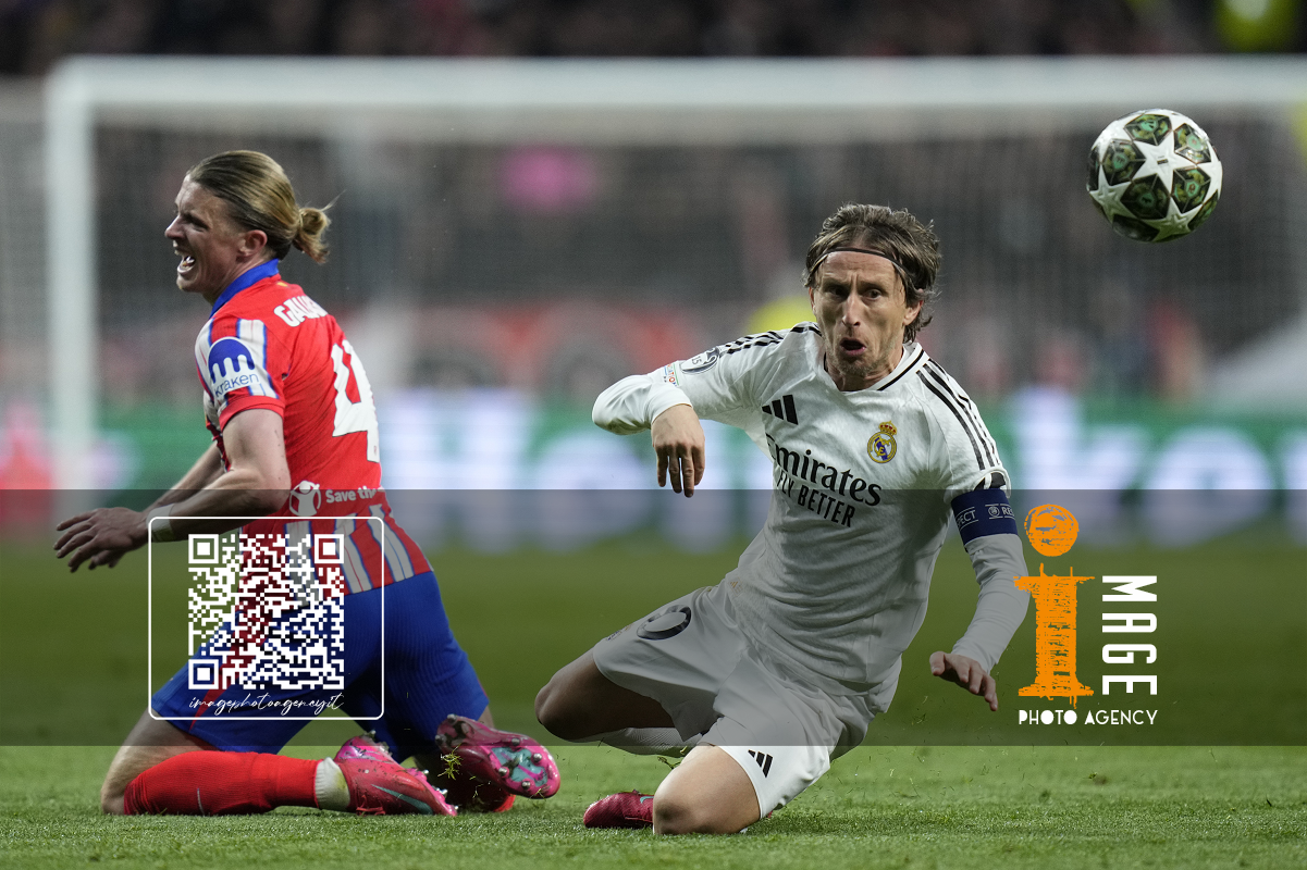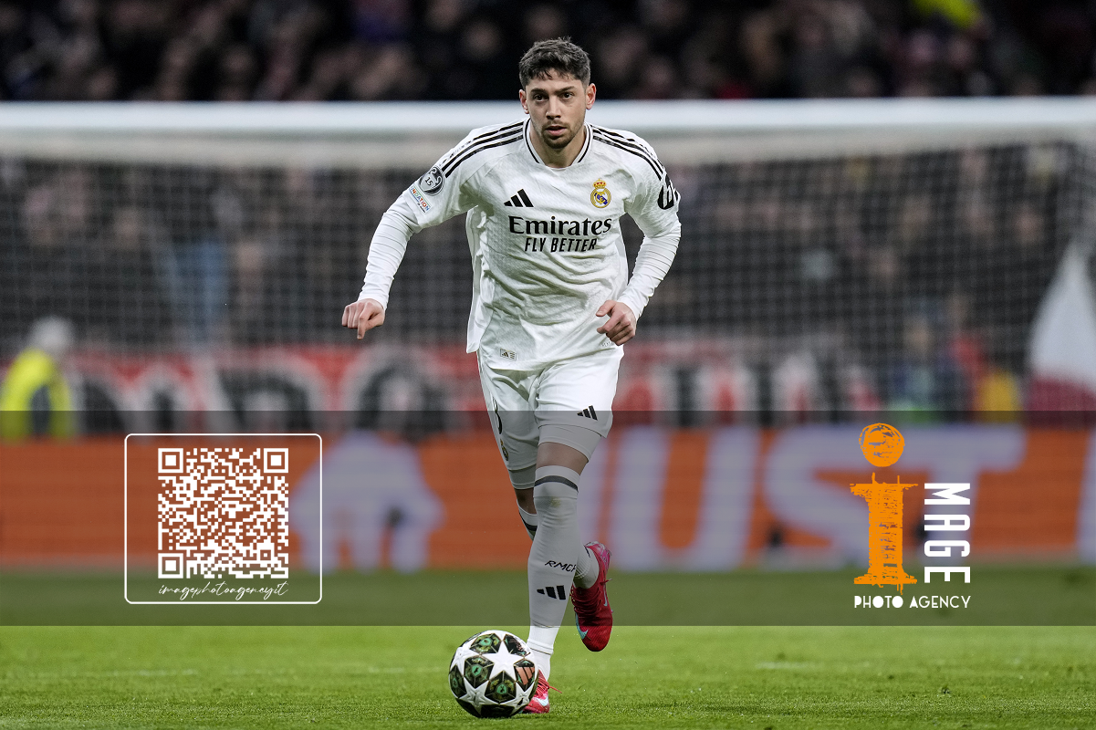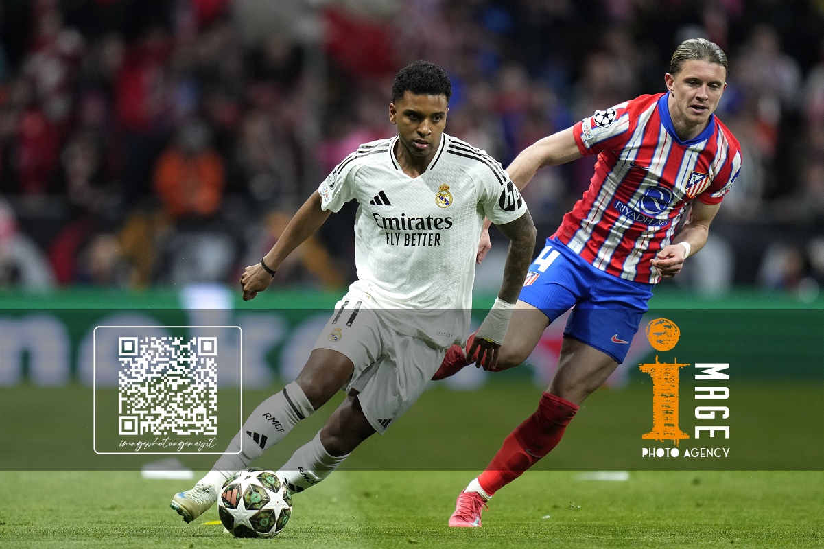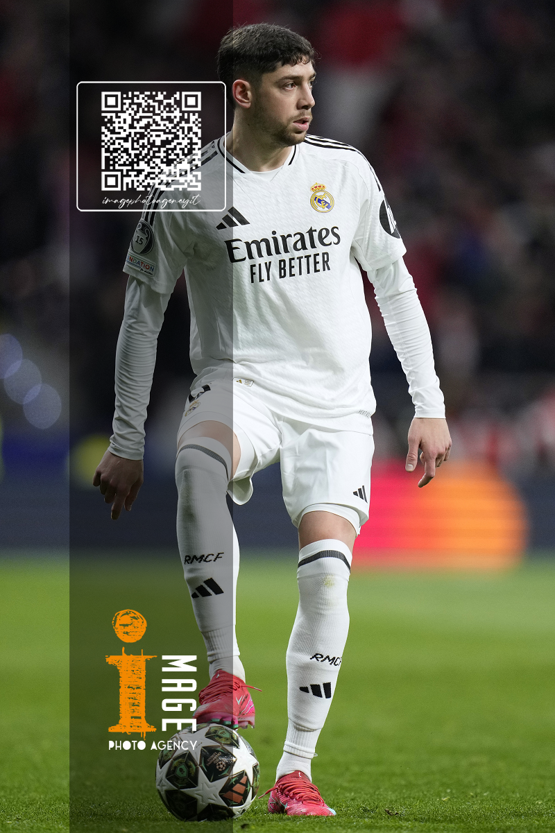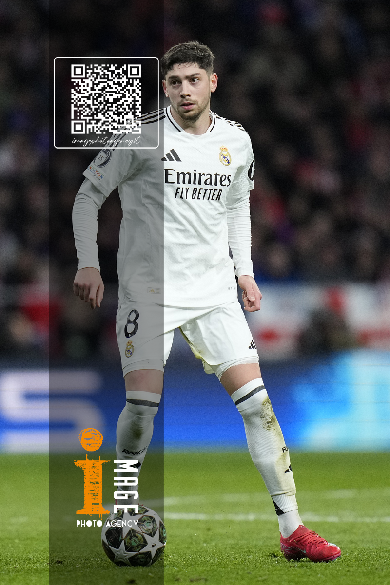 Cc Madrid 12/03/2025 - Champions League / Atletico Madrid-Atletico Madrid / foto Cesar Cebolla/Image Sport nella foto: Federico Valverde-Julian Alvarez