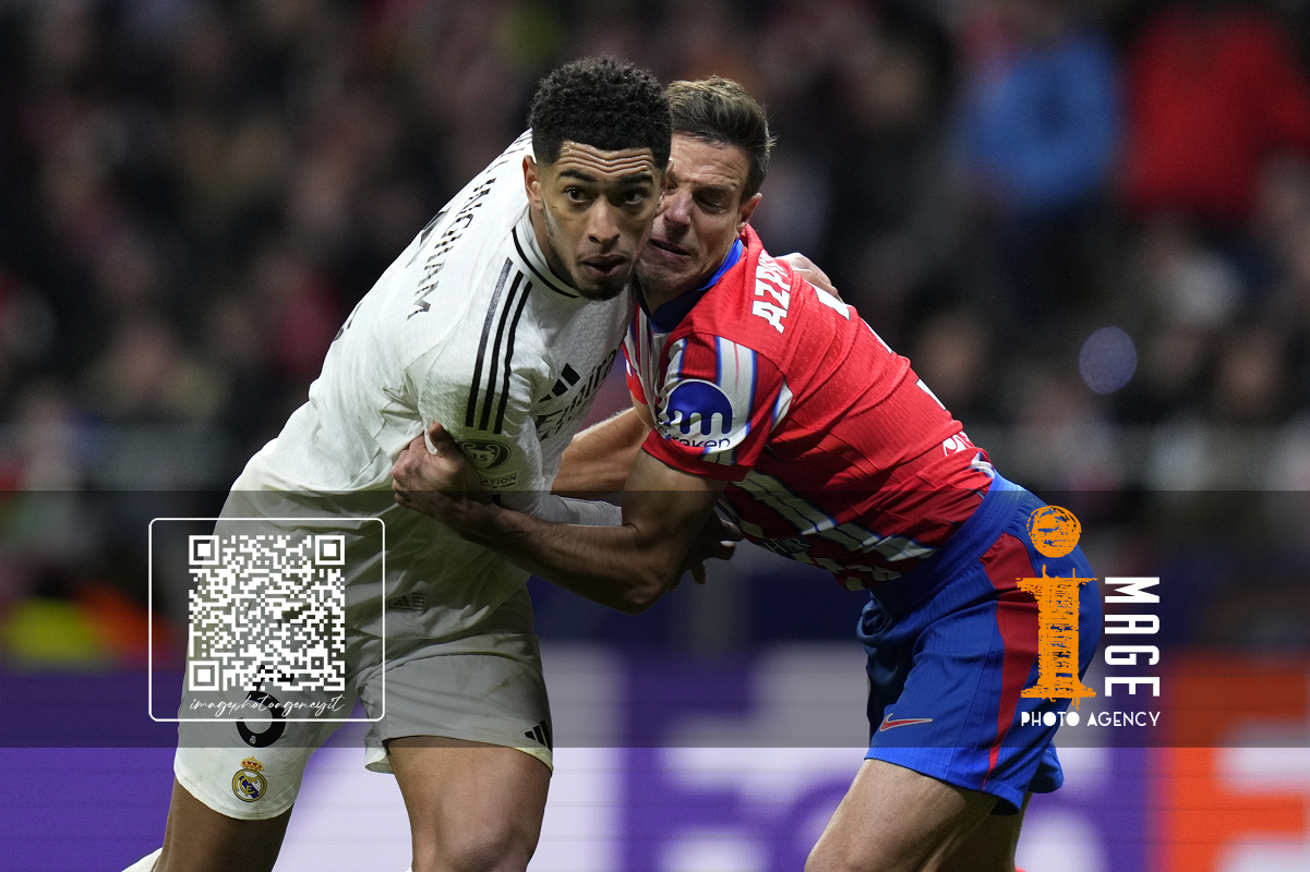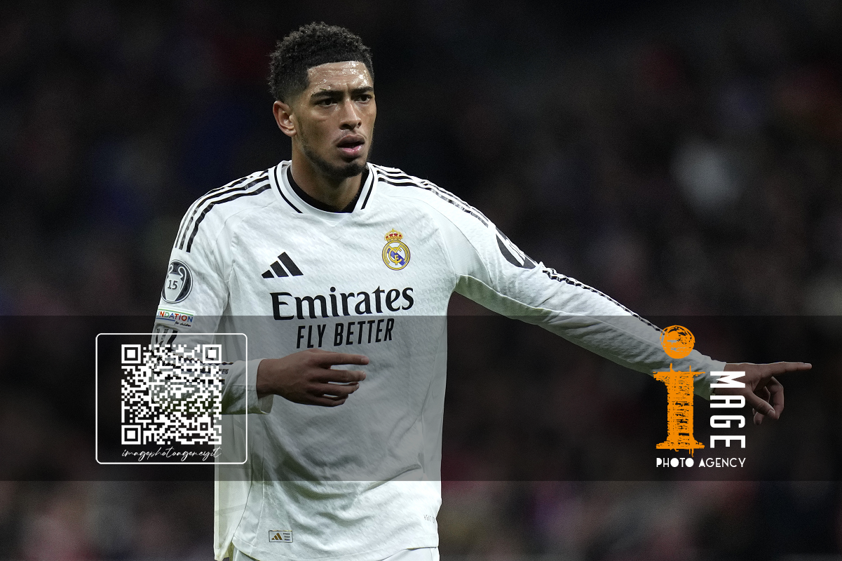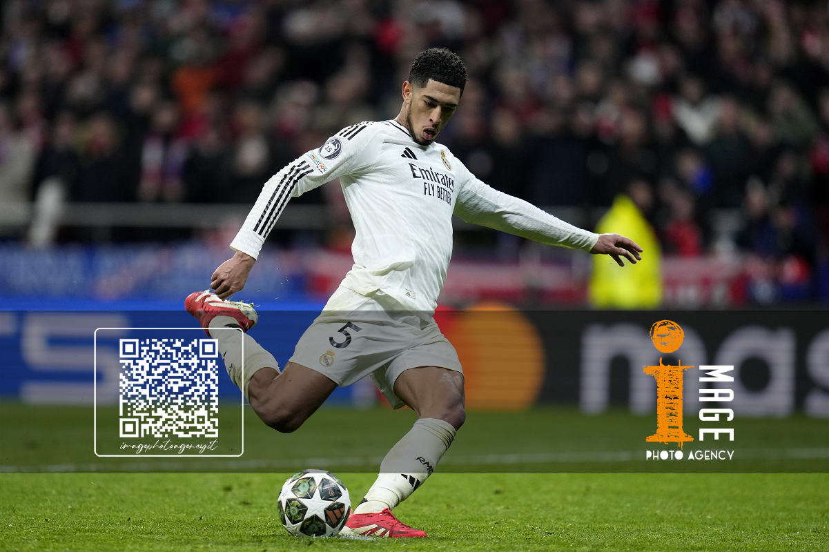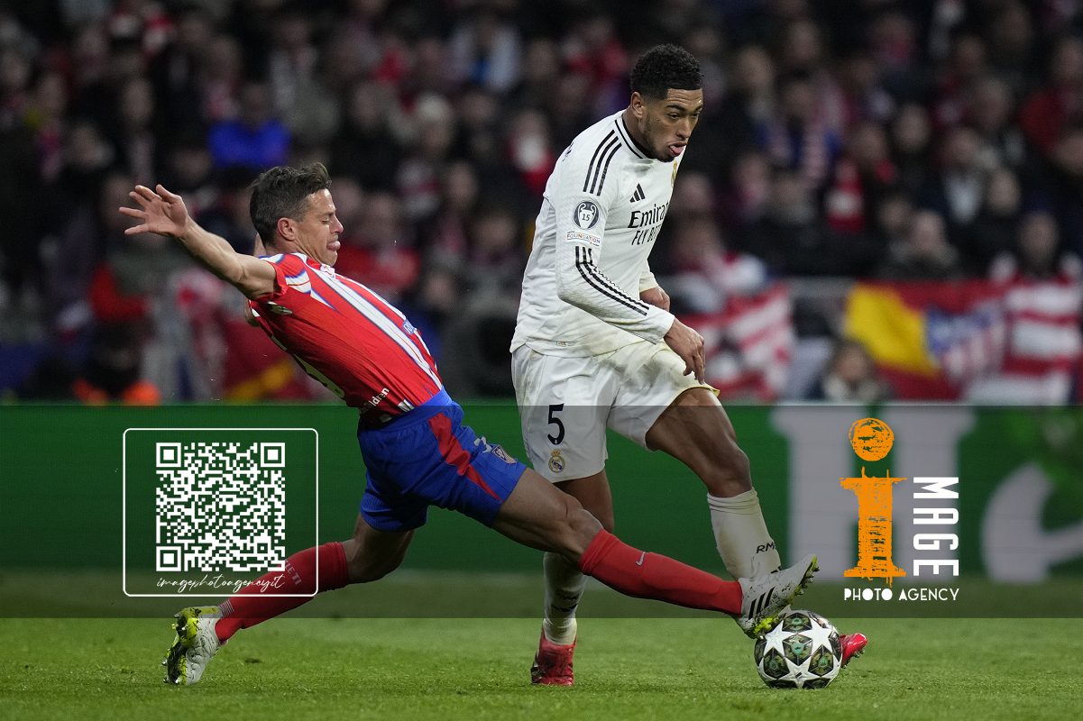 Cc Madrid 12/03/2025 - Champions League / Atletico Madrid-Atletico Madrid / foto Cesar Cebolla/Image Sport nella foto: Jude Bellingham-Cesar Azpiliueta