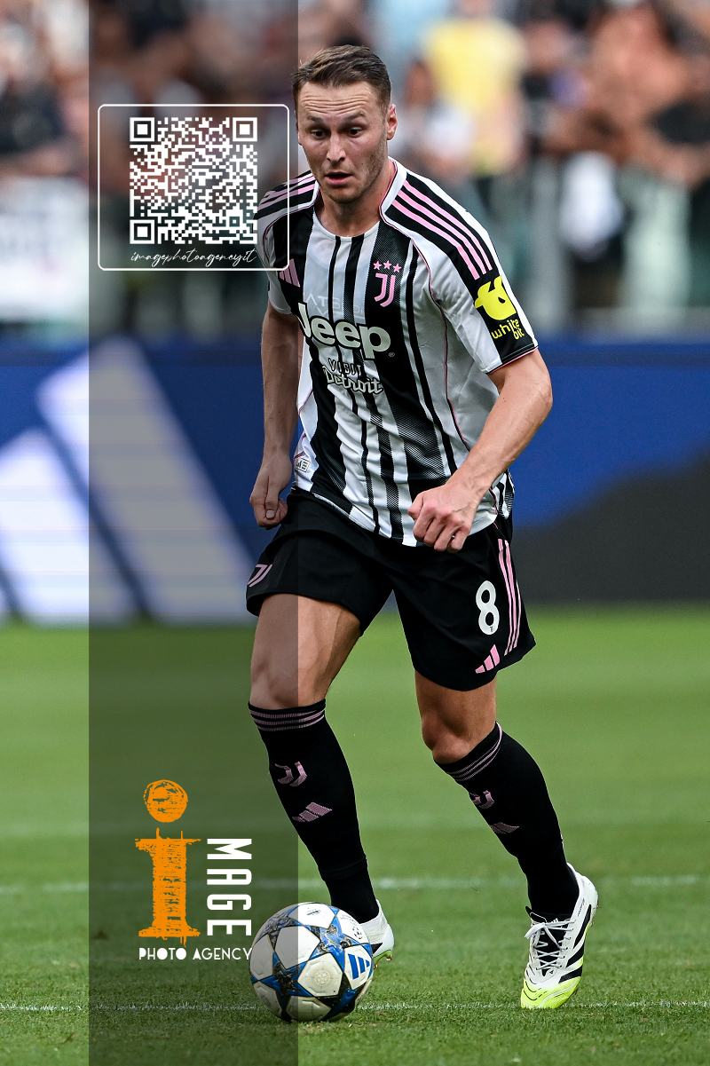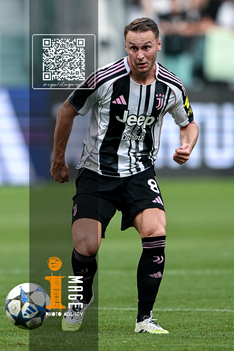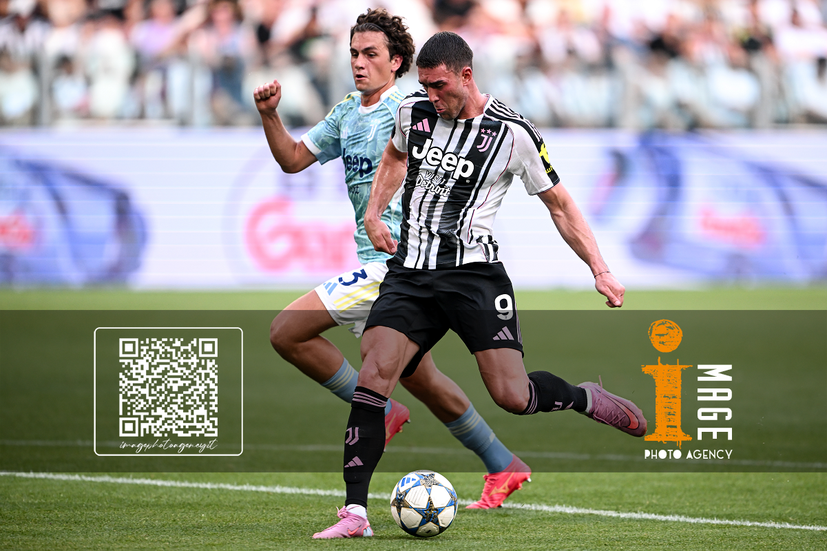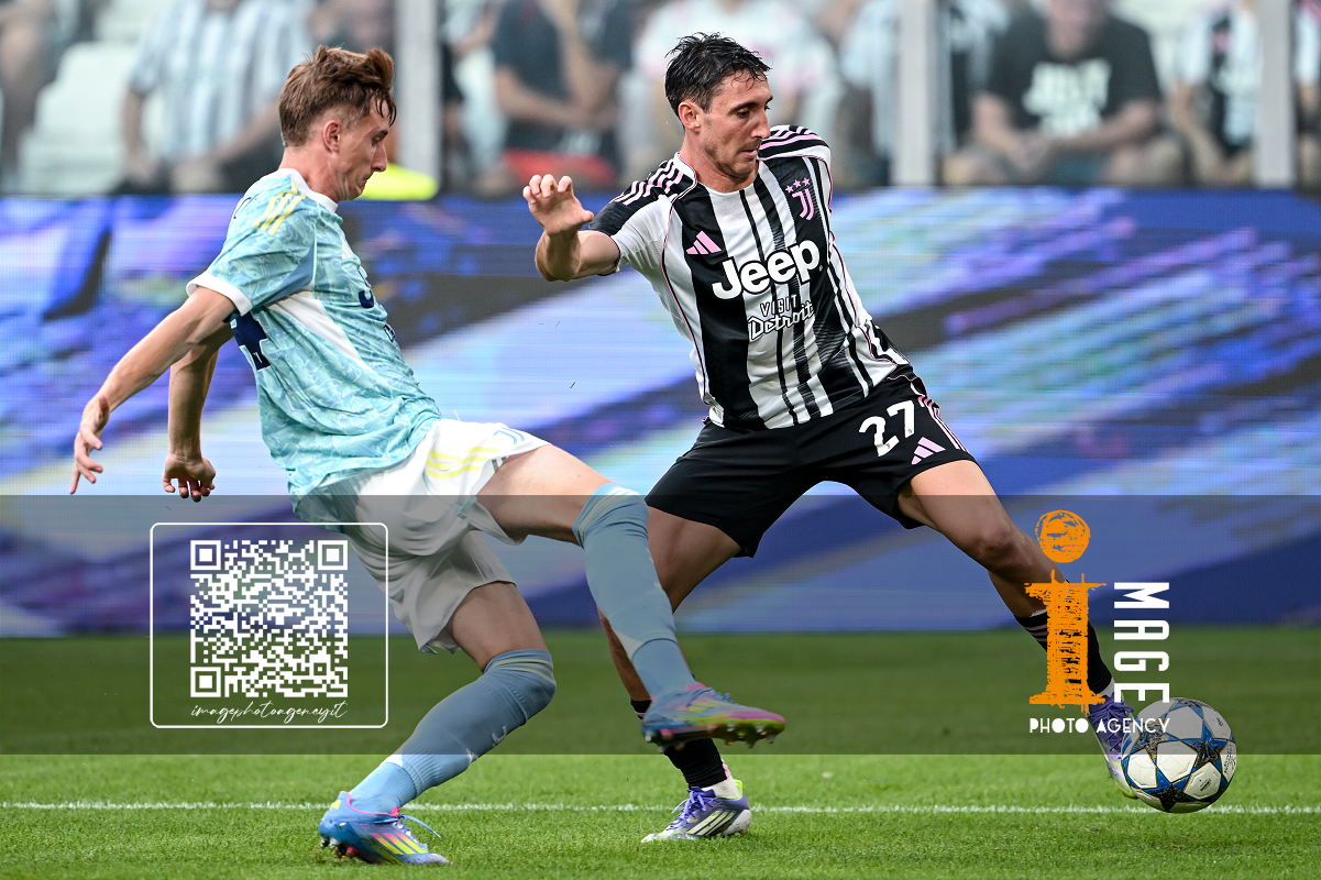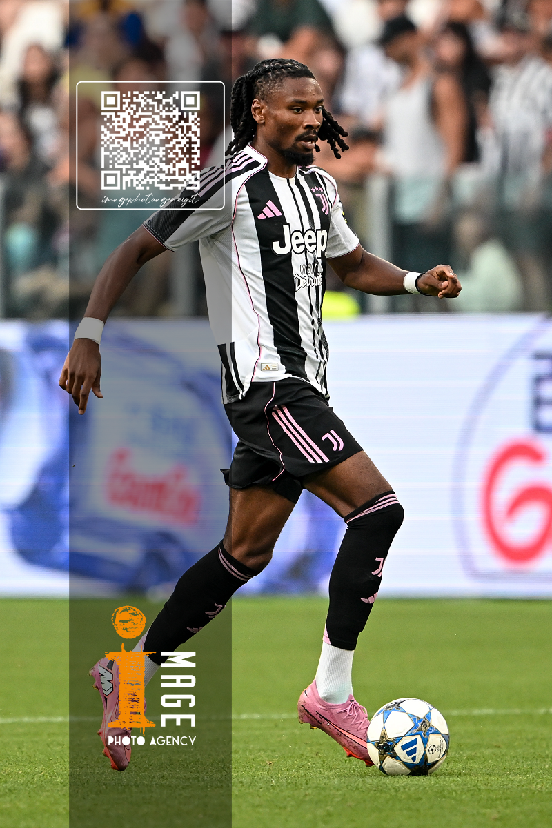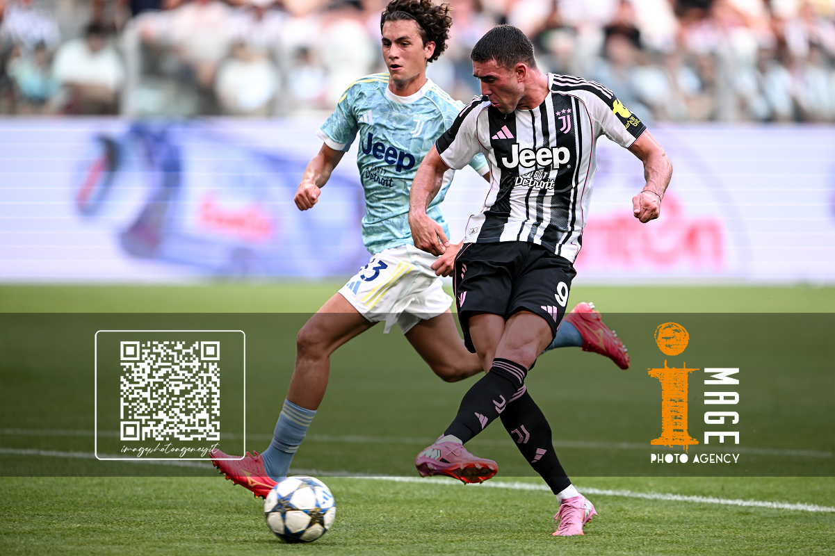 Cm Torino 13/08/2025 - amichevole / Juventus-Juventus Next Gen / foto Cristiano Mazzi/Image Sport nella foto: Pierre Kalulu-Gianmarco Di Biase-Francisco Conceicao