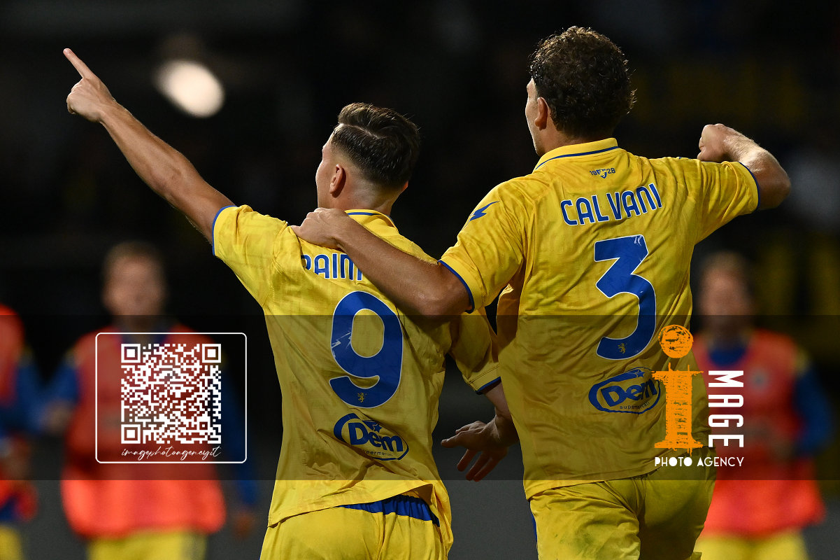 As Frosinone 30/09/2025 - campionato di calcio serie B / Frosinone-Cesena / foto Antonello Sammarco/Image Sport nella foto: Gabriele Calvani-Jalen Blesa