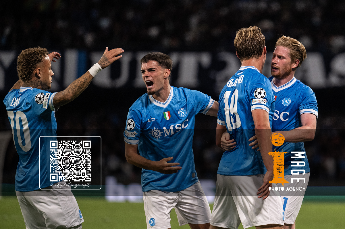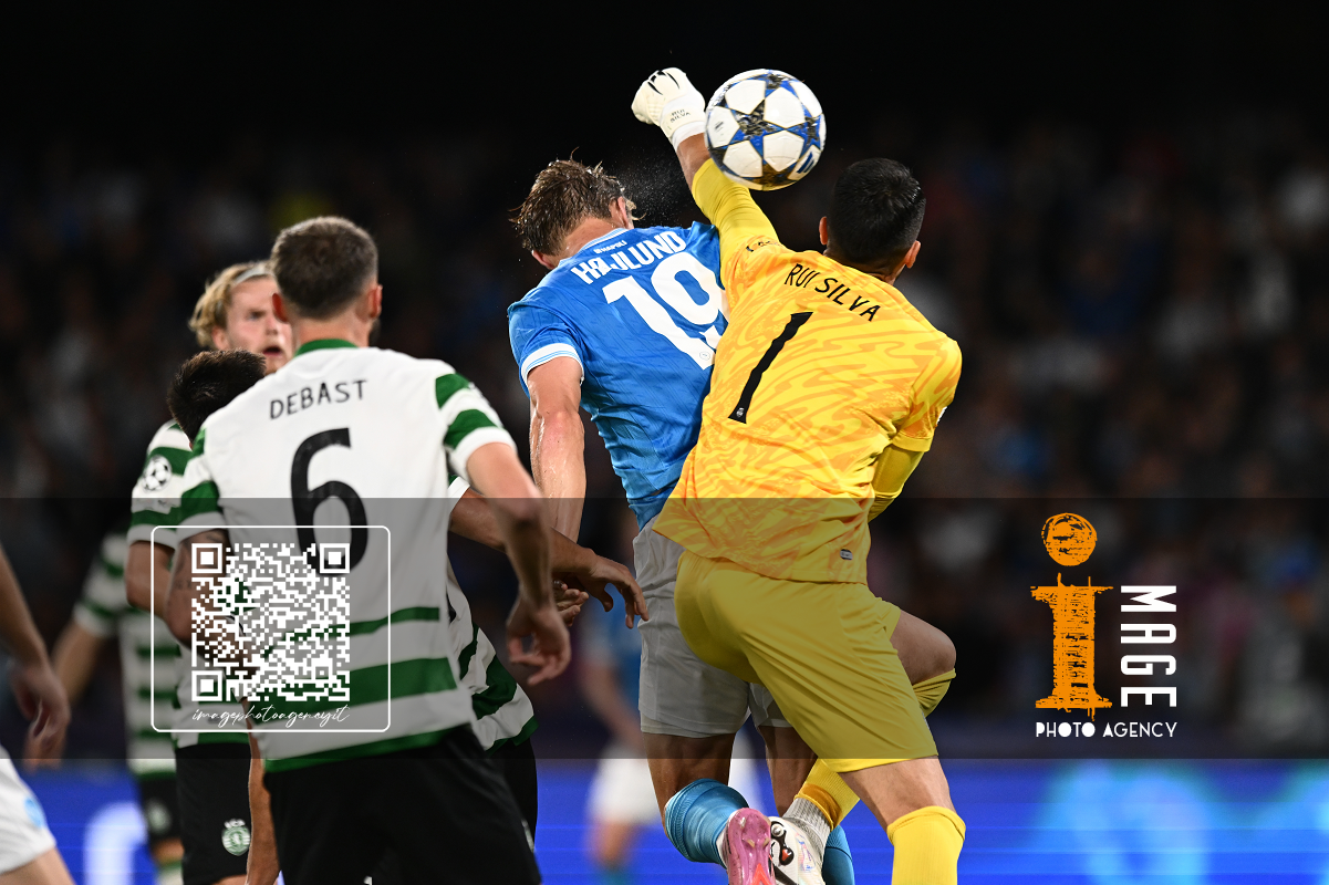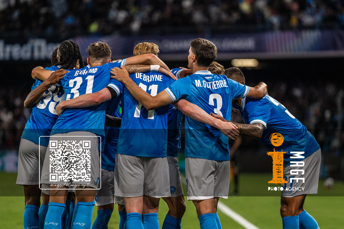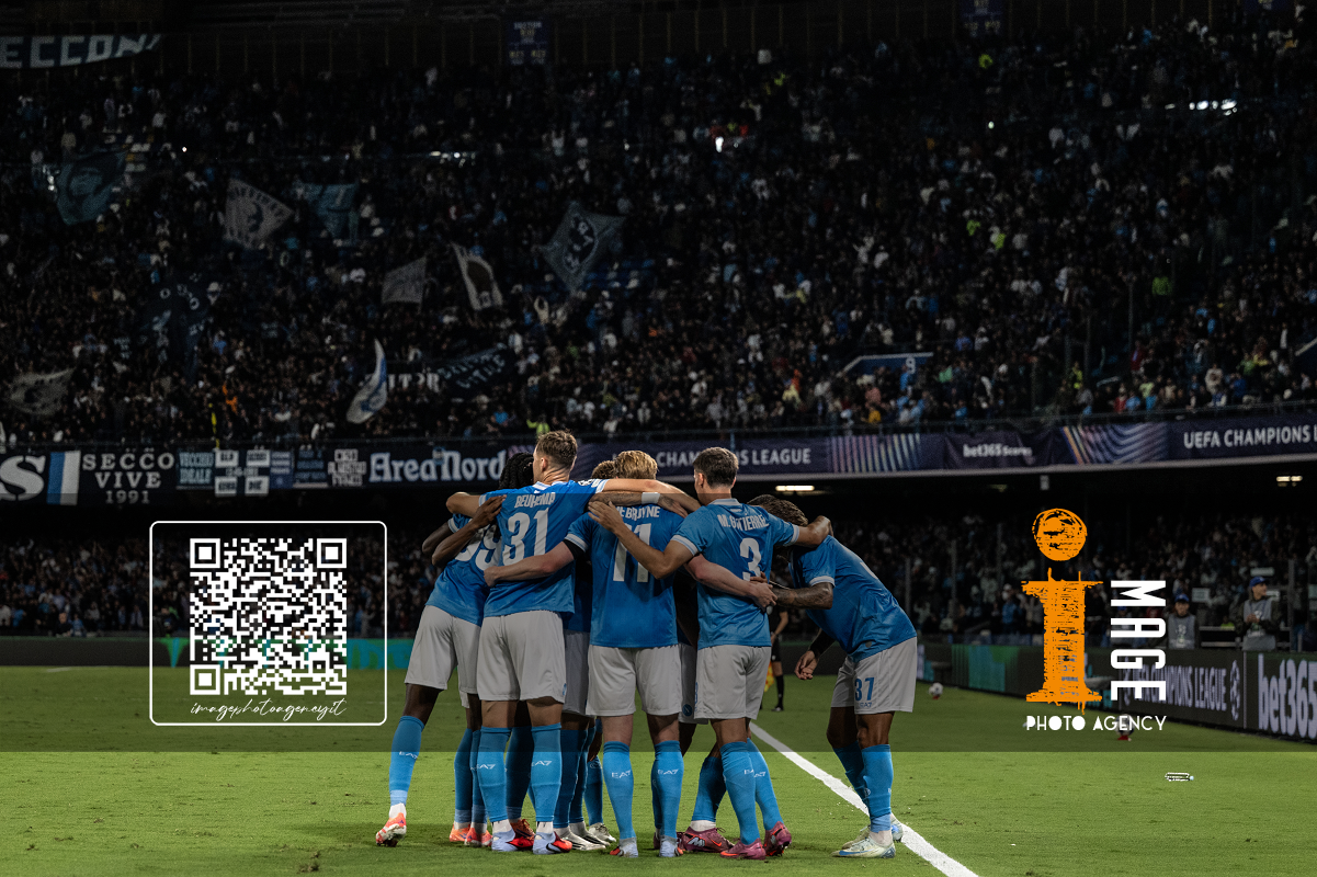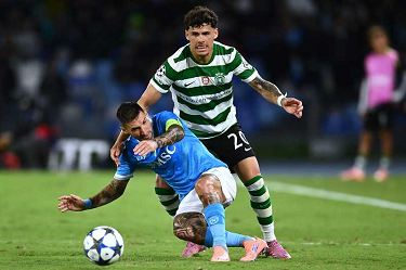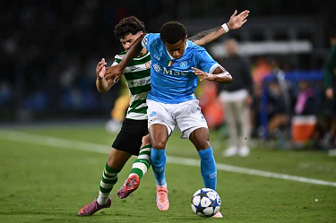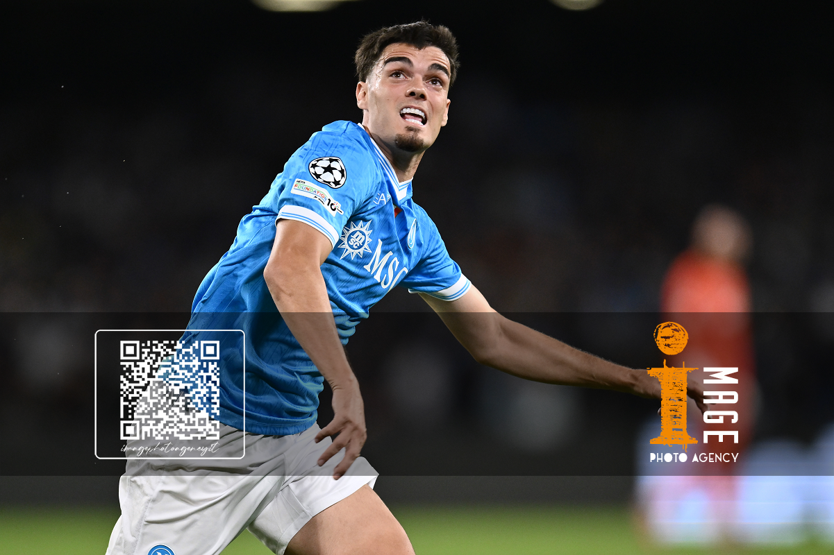 Dc Napoli 01/10/2025 - Champions League / Napoli-Sporting Lisbona / foto Domenico Cippitelli/Image Sport nella foto: Matteo Politano-Maximiliano Araujo