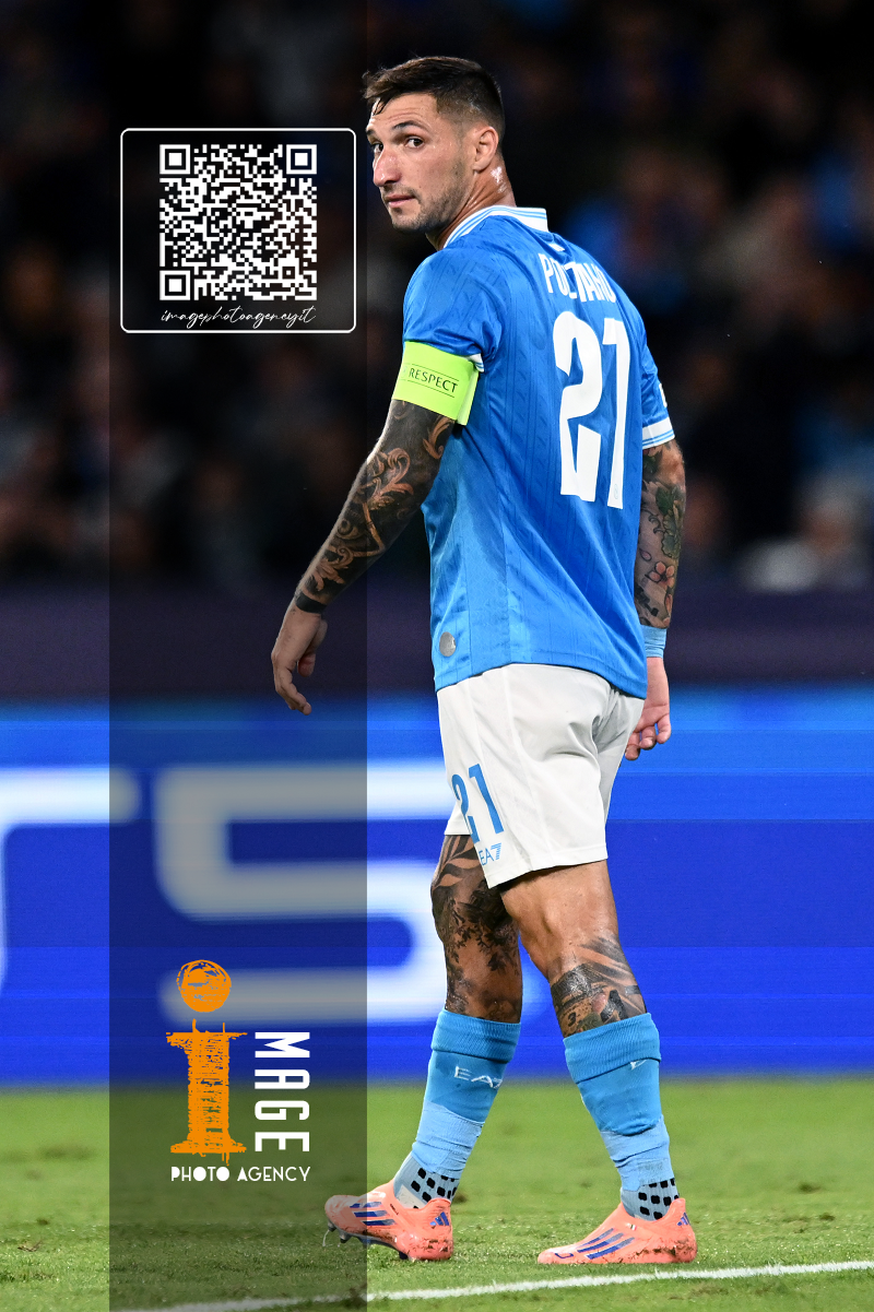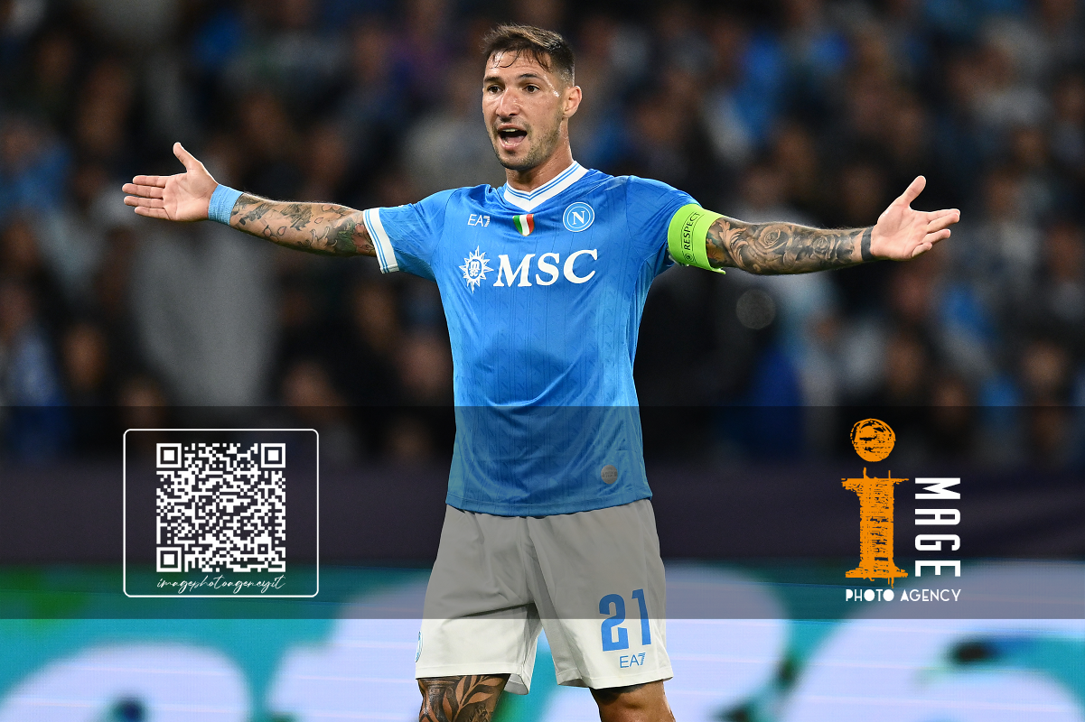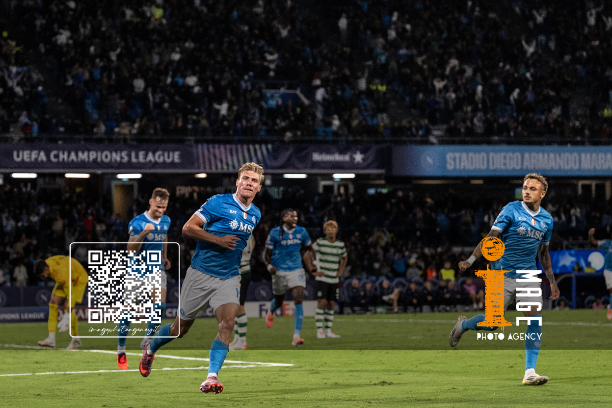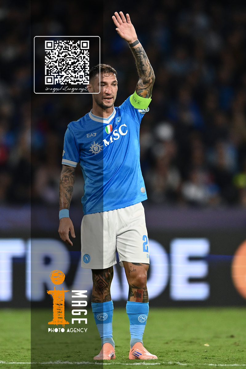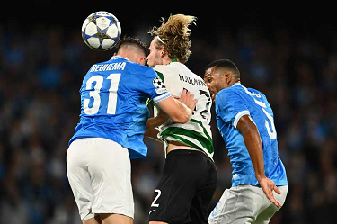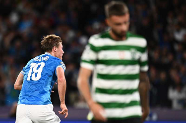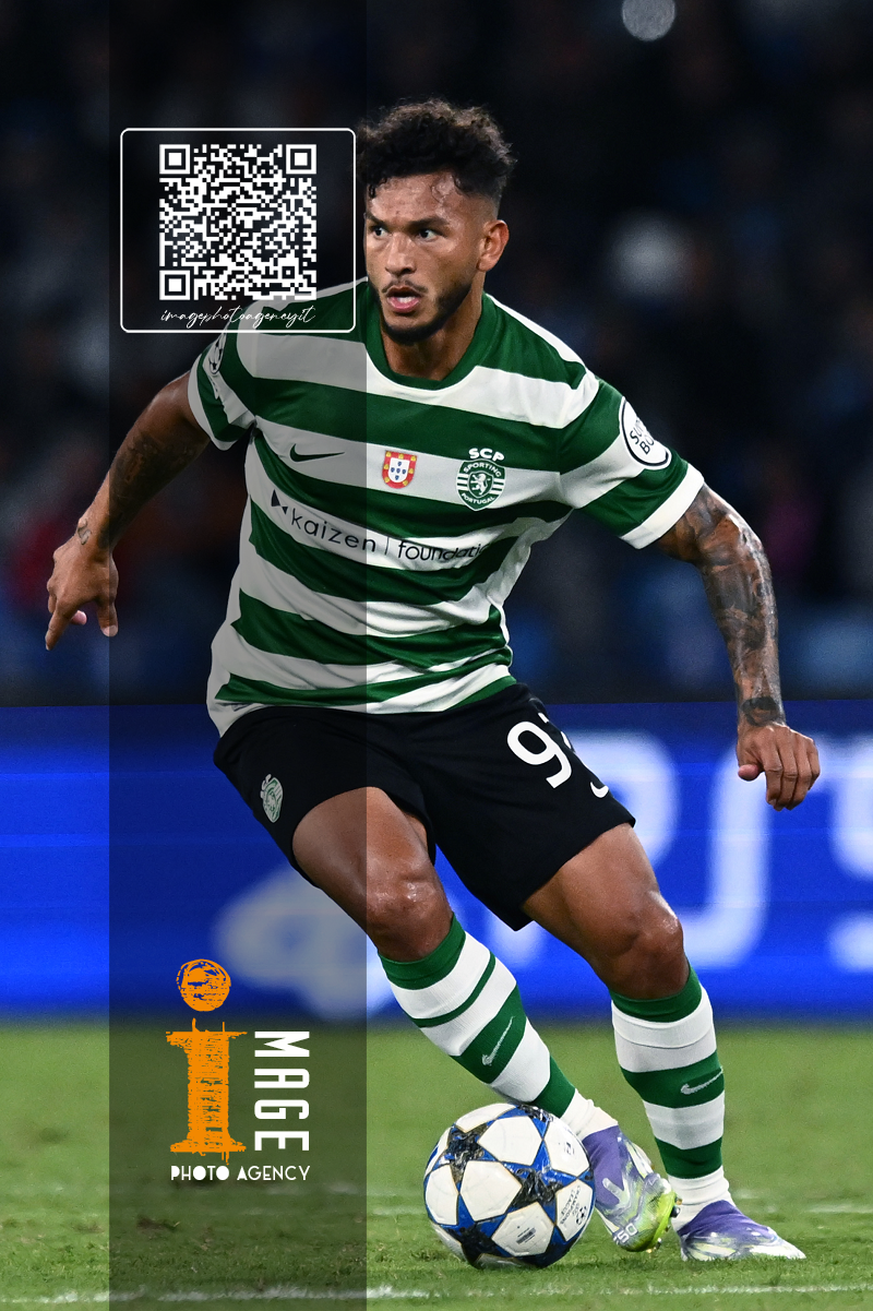 Dc Napoli 01/10/2025 - Champions League / Napoli-Sporting Lisbona / foto Domenico Cippitelli/Image Sport nella foto: Matteo Politano-Maximiliano Araujo