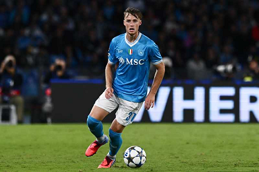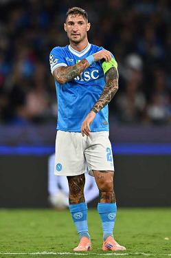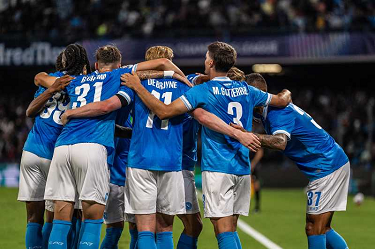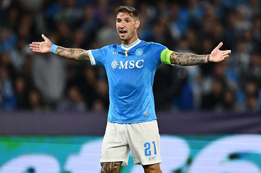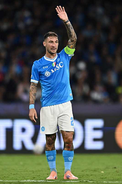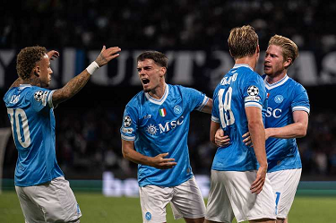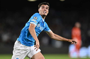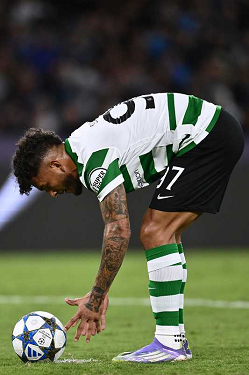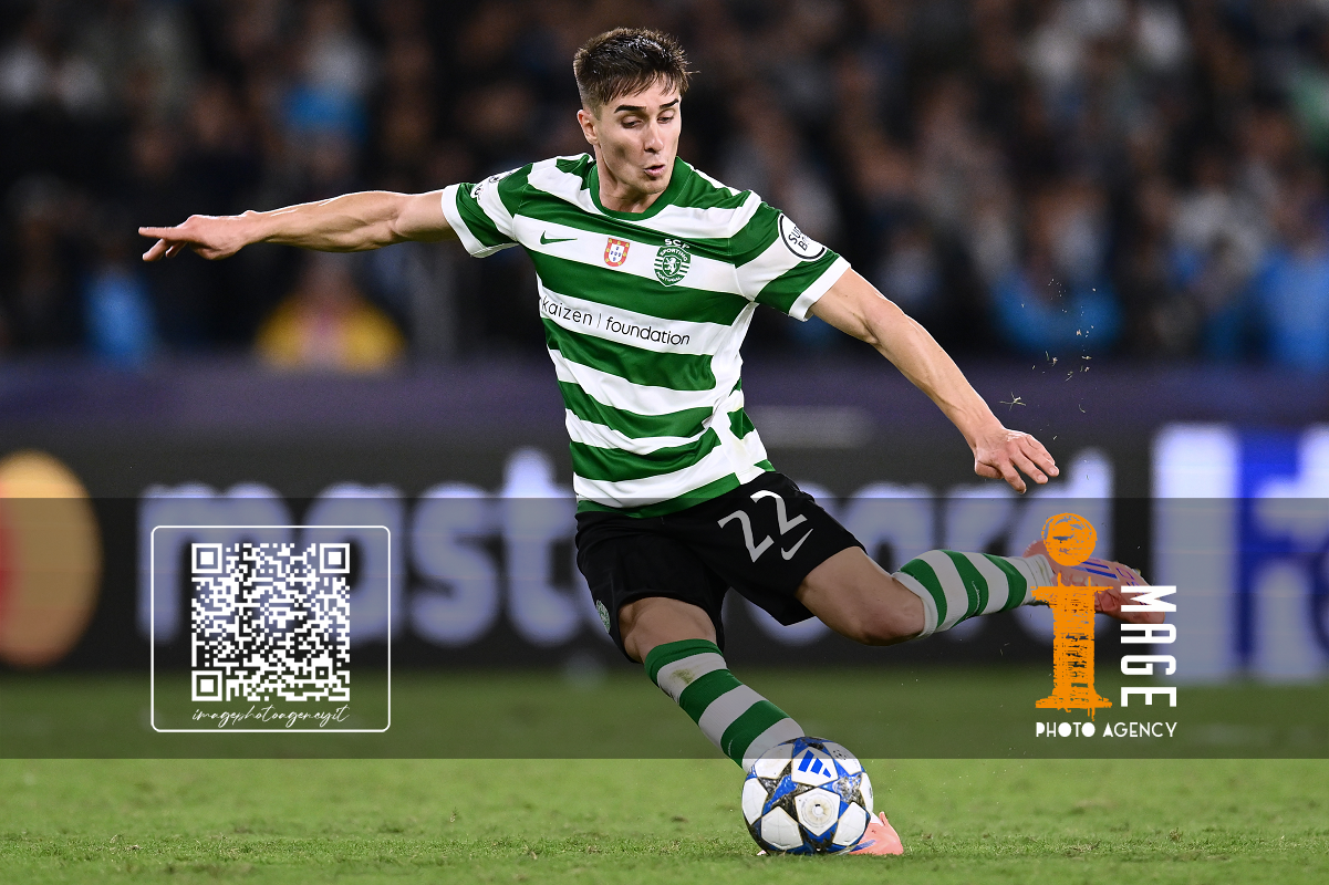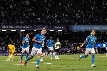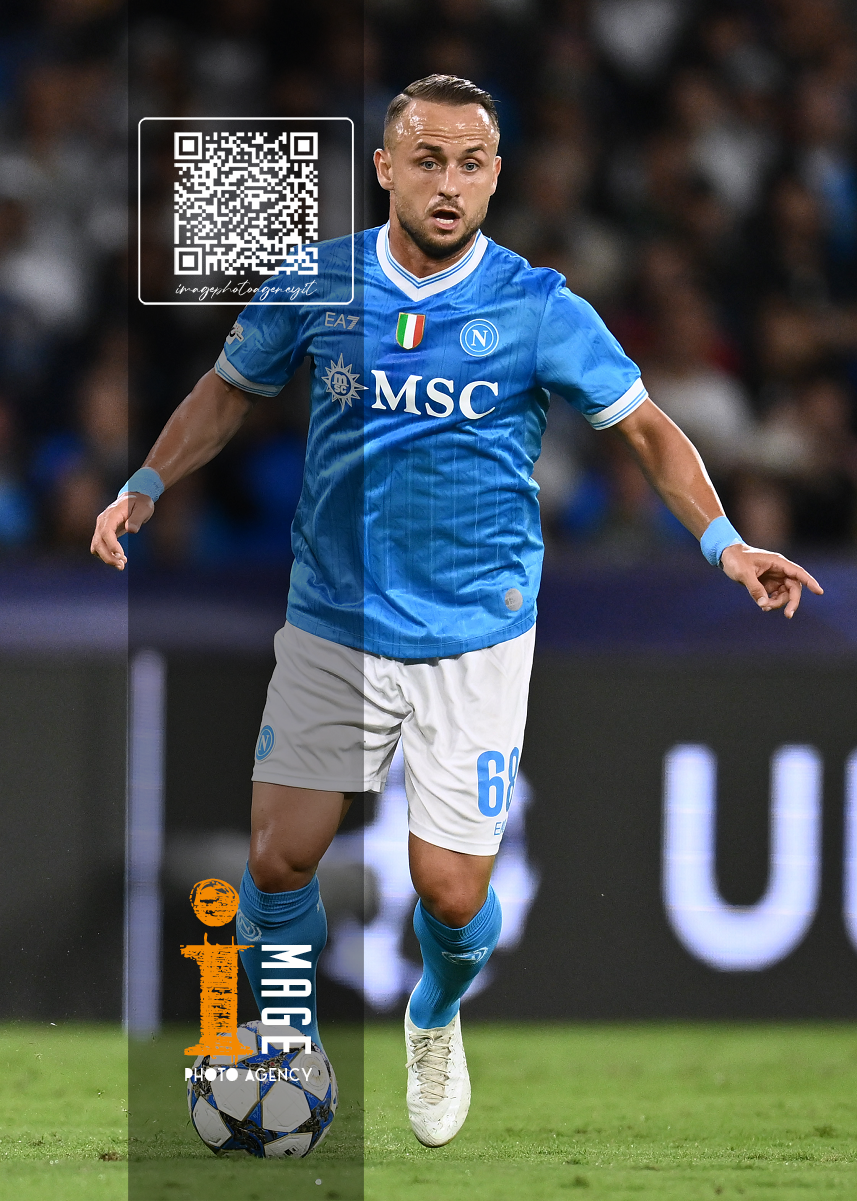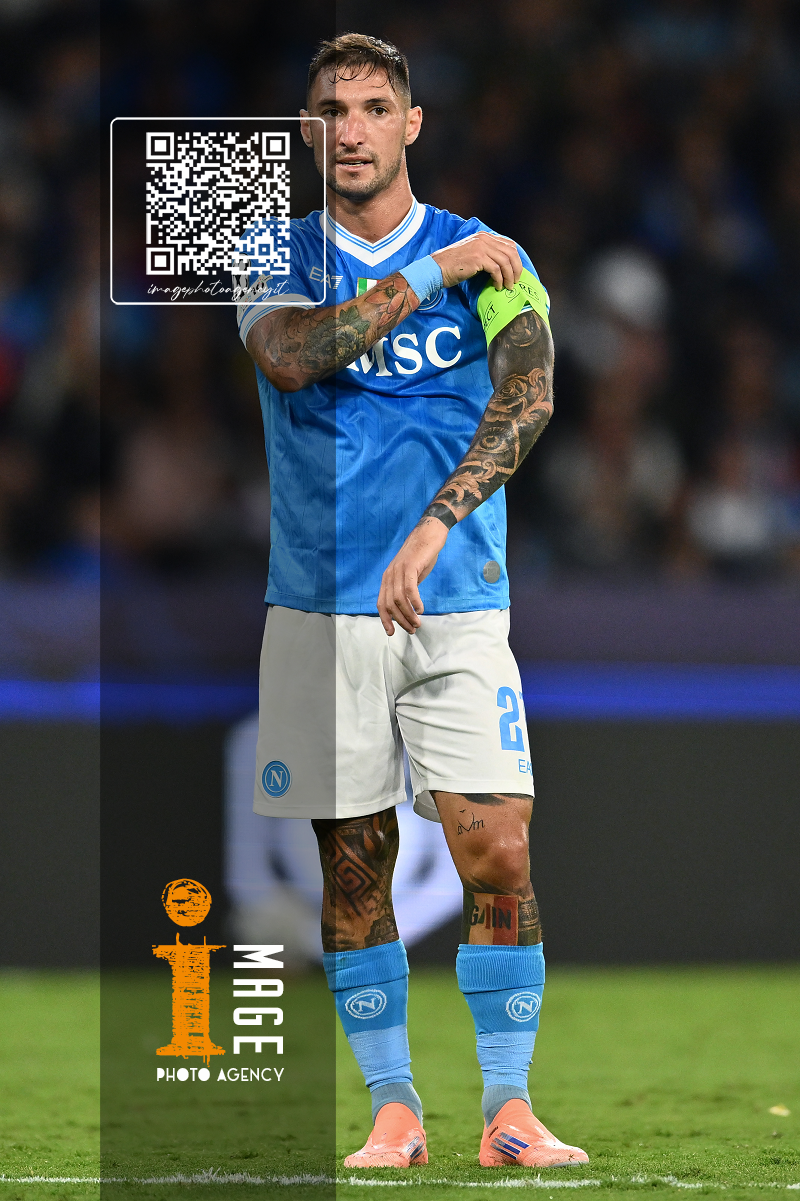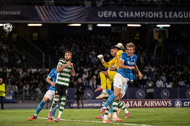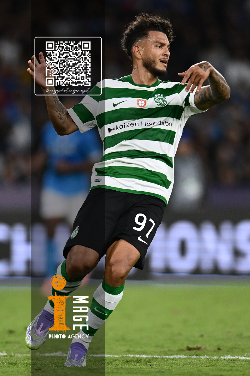 Dc Napoli 01/10/2025 - Champions League / Napoli-Sporting Lisbona / foto Domenico Cippitelli/Image Sport nella foto: Matteo Politano-Maximiliano Araujo
