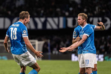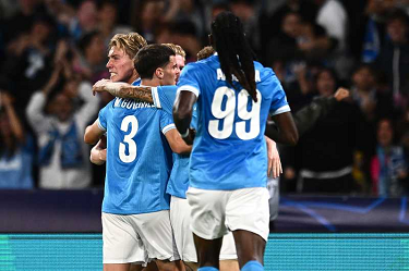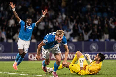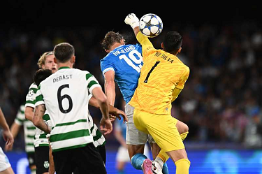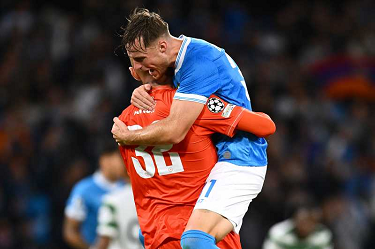 Dc Napoli 01/10/2025 - Champions League / Napoli-Sporting Lisbona / foto Domenico Cippitelli/Image Sport nella foto: Sam Beukema-Vanja Milinkovic Savic