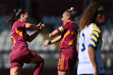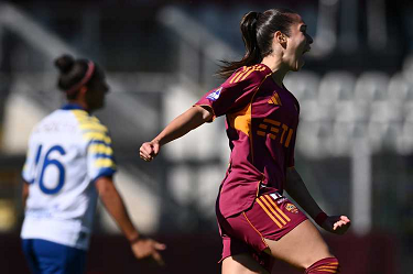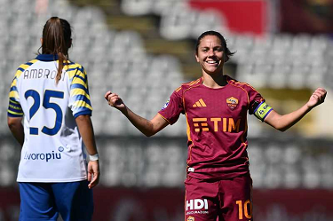 As Roma 04/10/2025 - campionato di calcio serie A femminile / Roma-Parma / foto Antonello Sammarco/Image Sport nella foto: esultanza gol Manuela Giugliano