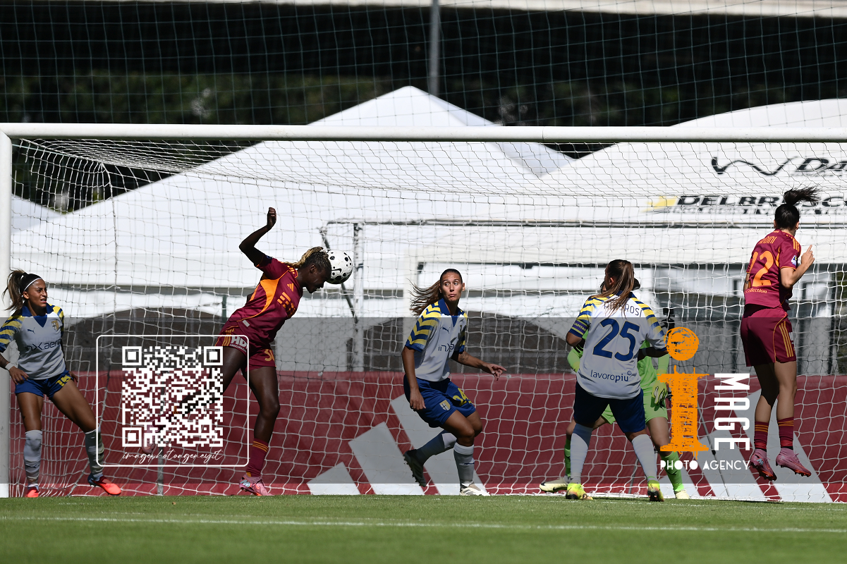 As Roma 04/10/2025 - campionato di calcio serie A femminile / Roma-Parma / foto Antonello Sammarco/Image Sport nella foto: Viktoria Pinther-Valentina Bergamaschi