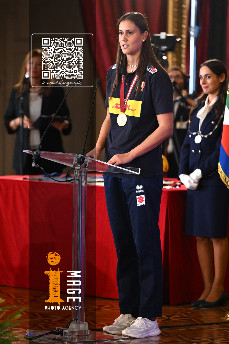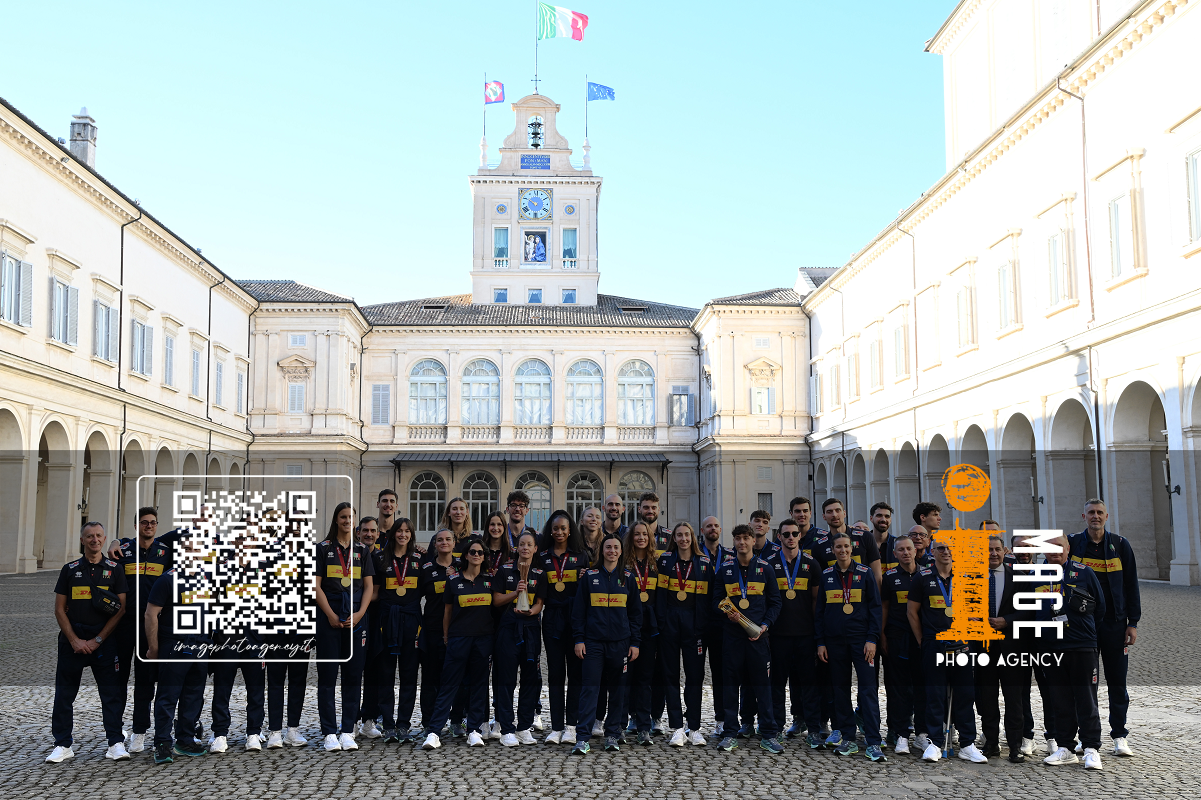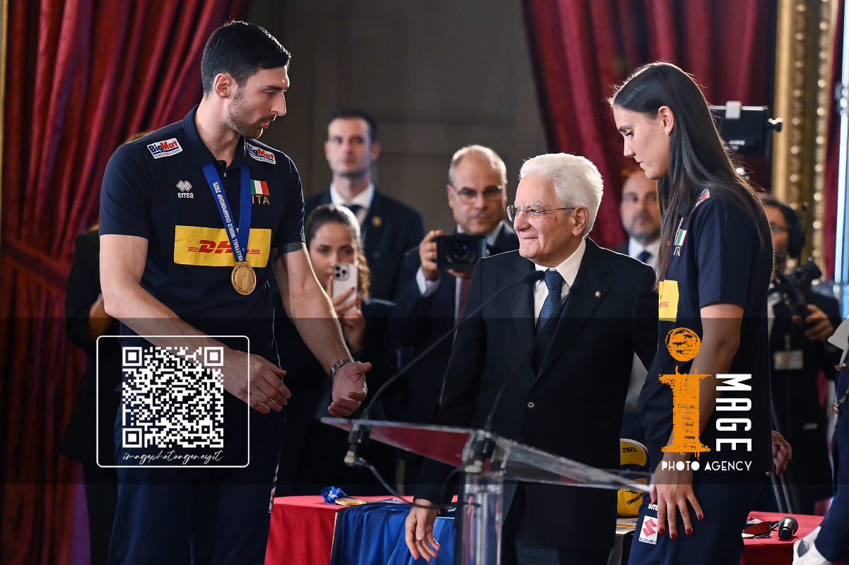Dc Roma 08/10/2025 - Il Presidente della Repubblica incontra le Nazionali di Volley / foto Domenico Cippitelli/Image nella foto: Simone Anzani-Sergio Mattarella-Anna Danesi