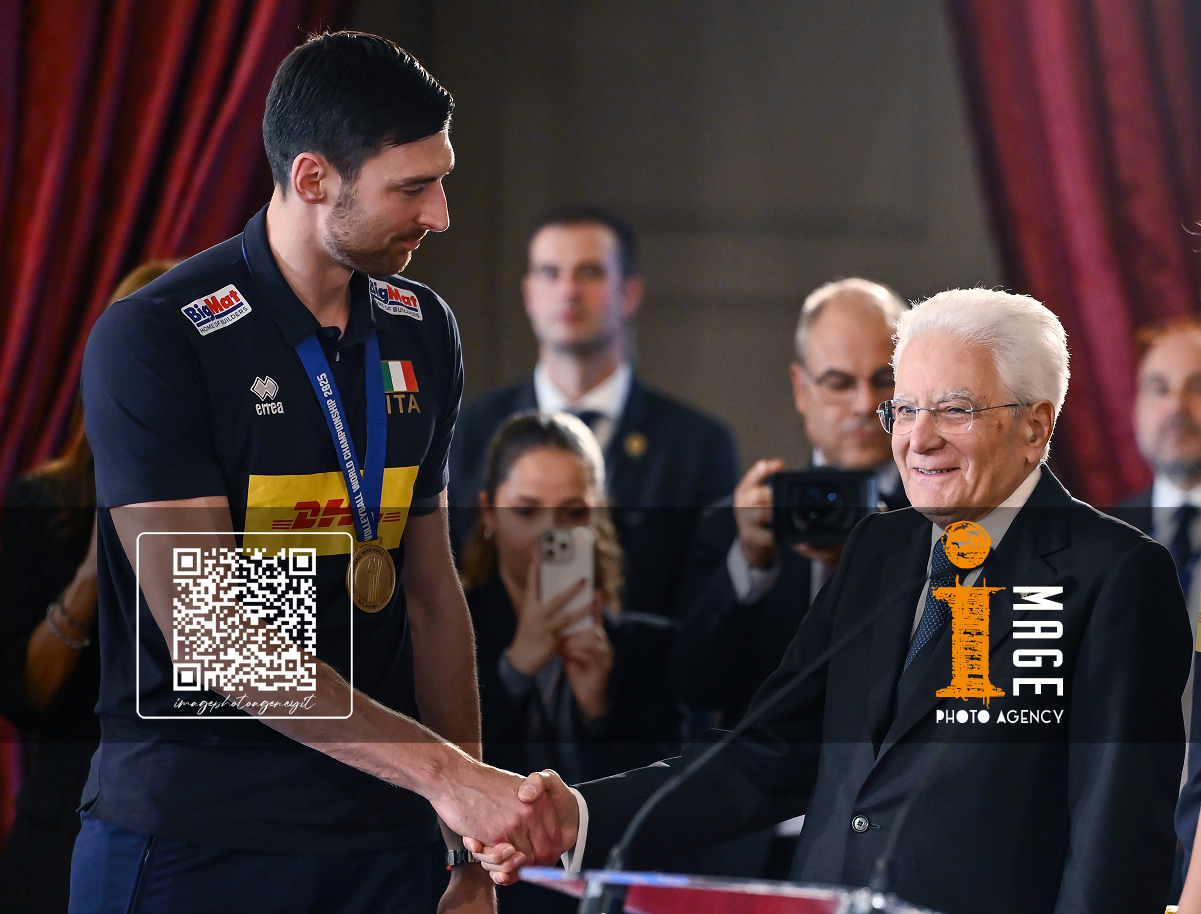 Dc Roma 08/10/2025 - Il Presidente della Repubblica incontra le Nazionali di Volley / foto Domenico Cippitelli/Image nella foto: Simone Anzani-Sergio Mattarella