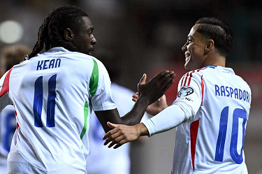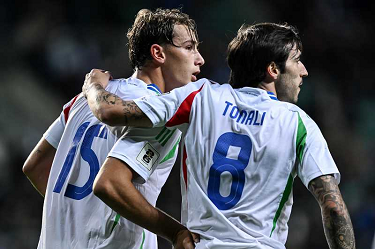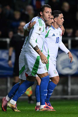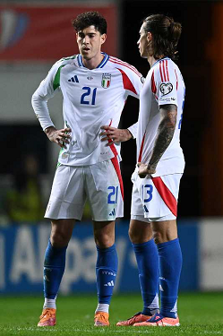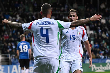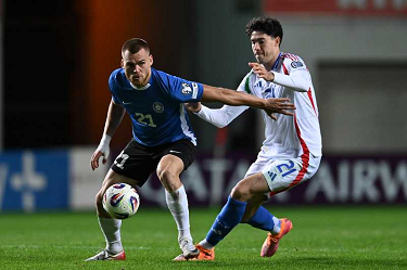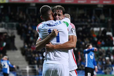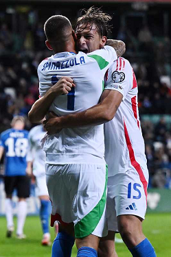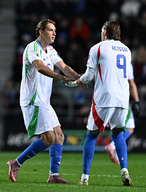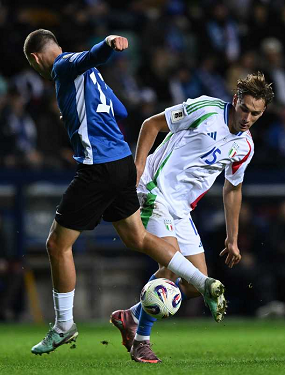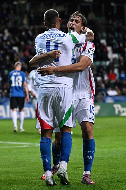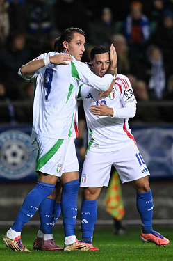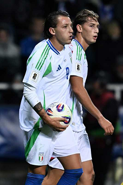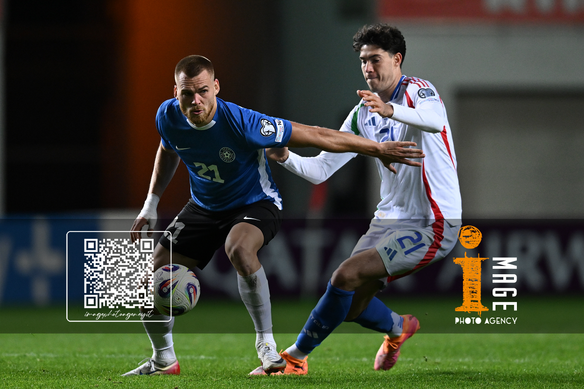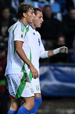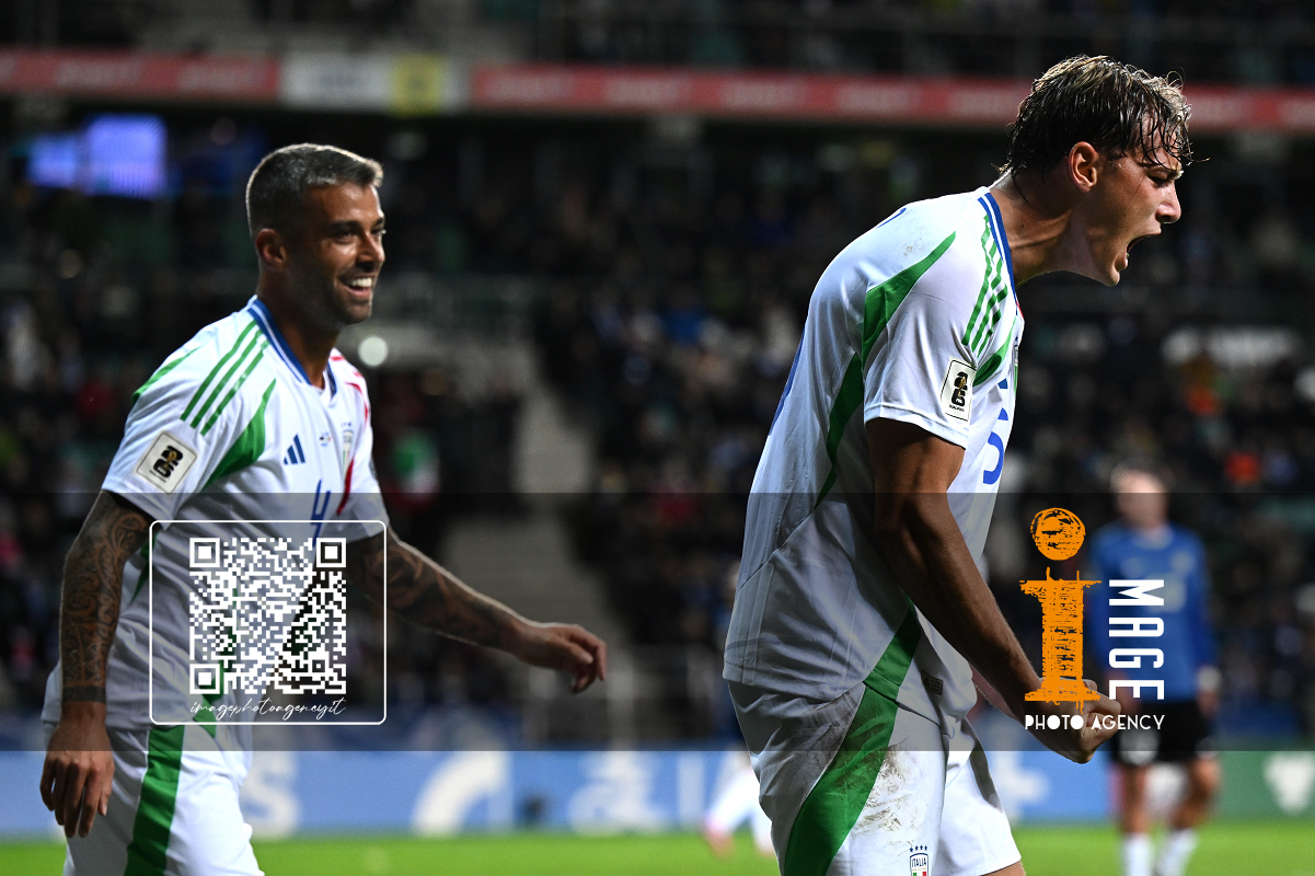Db Tallin (Estonia) 11/10/2025 - qualificazioni Mondiali 2026 / Estonia-Italia / foto Daniele Buffa/Image Sport nella foto: Francesco Pio Esposito-Mateo Retegui