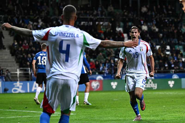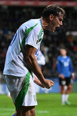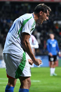 Db Tallin (Estonia) 11/10/2025 - qualificazioni Mondiali 2026 / Estonia-Italia / foto Daniele Buffa/Image Sport nella foto: esultanza gol Francesco Pio Esposito