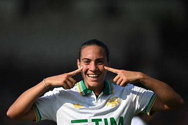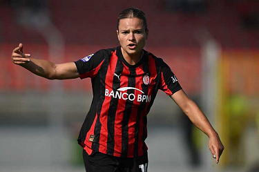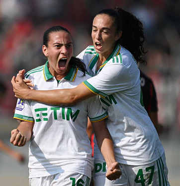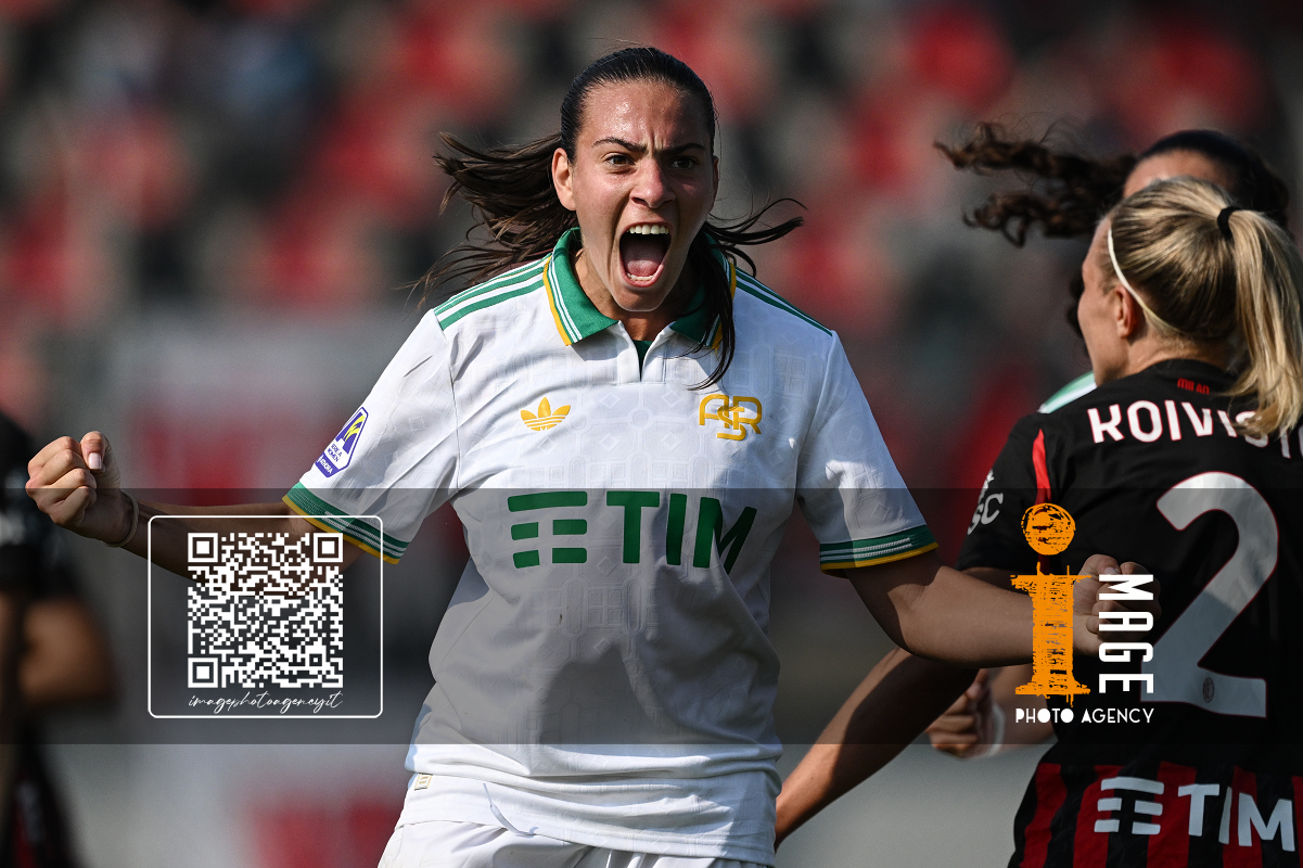 Fp Fiorenzuola 12/10/2025 - campionato di calcio serie A femminile / Milan-Roma / foto Fabrizio Patrucco/Image Sport nella foto: esultanza gol Manuela Giugliano