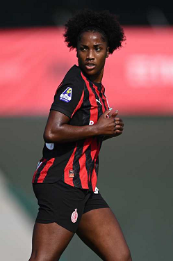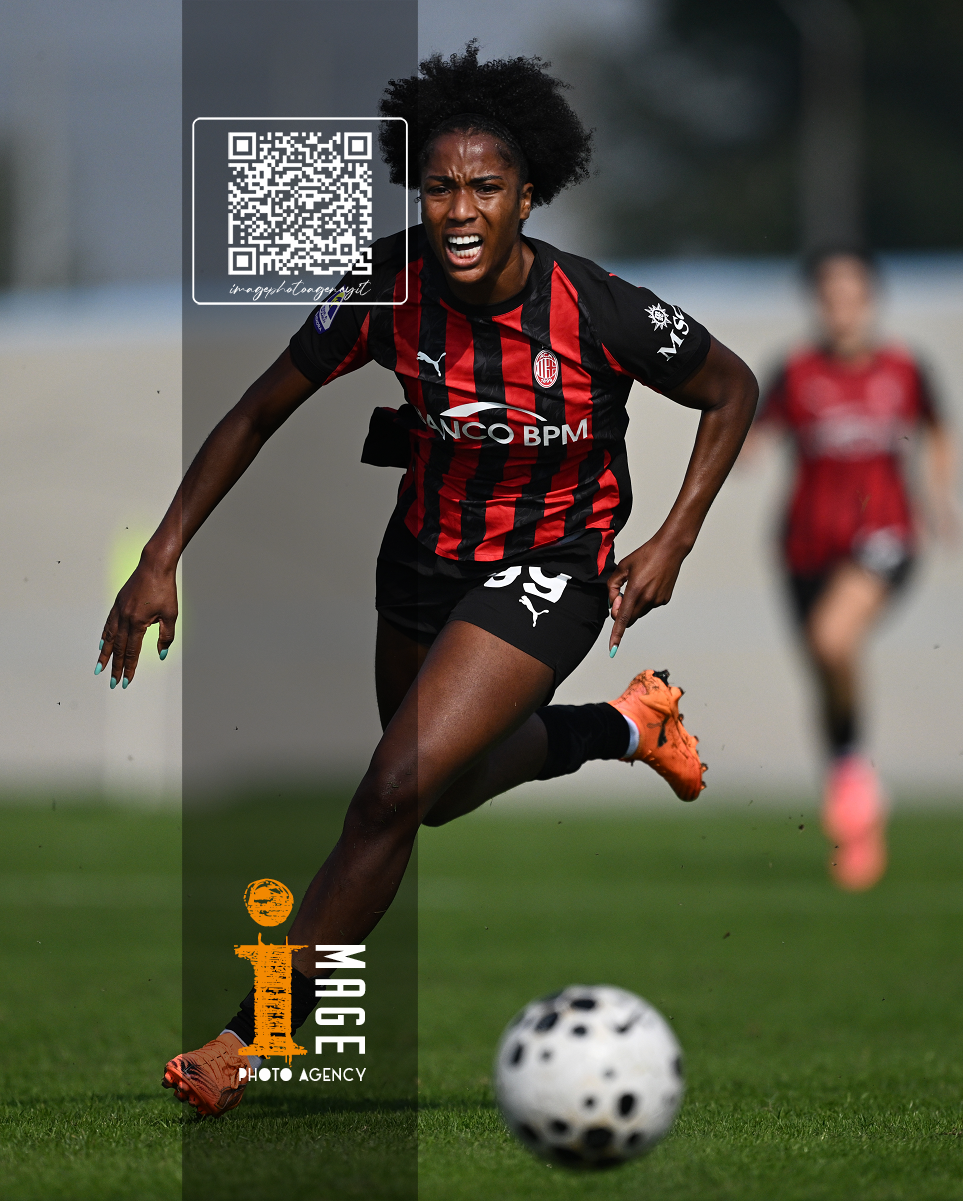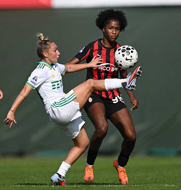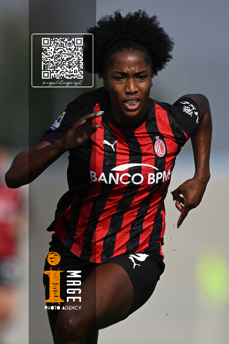 Mg Fiorenzuola 12/10/2025 - campionato di calcio serie A femminile / Milan-Roma / foto Matteo Gribaudi/Image Sport nella foto: Mary Chnate' Dompig-Giada Greggi