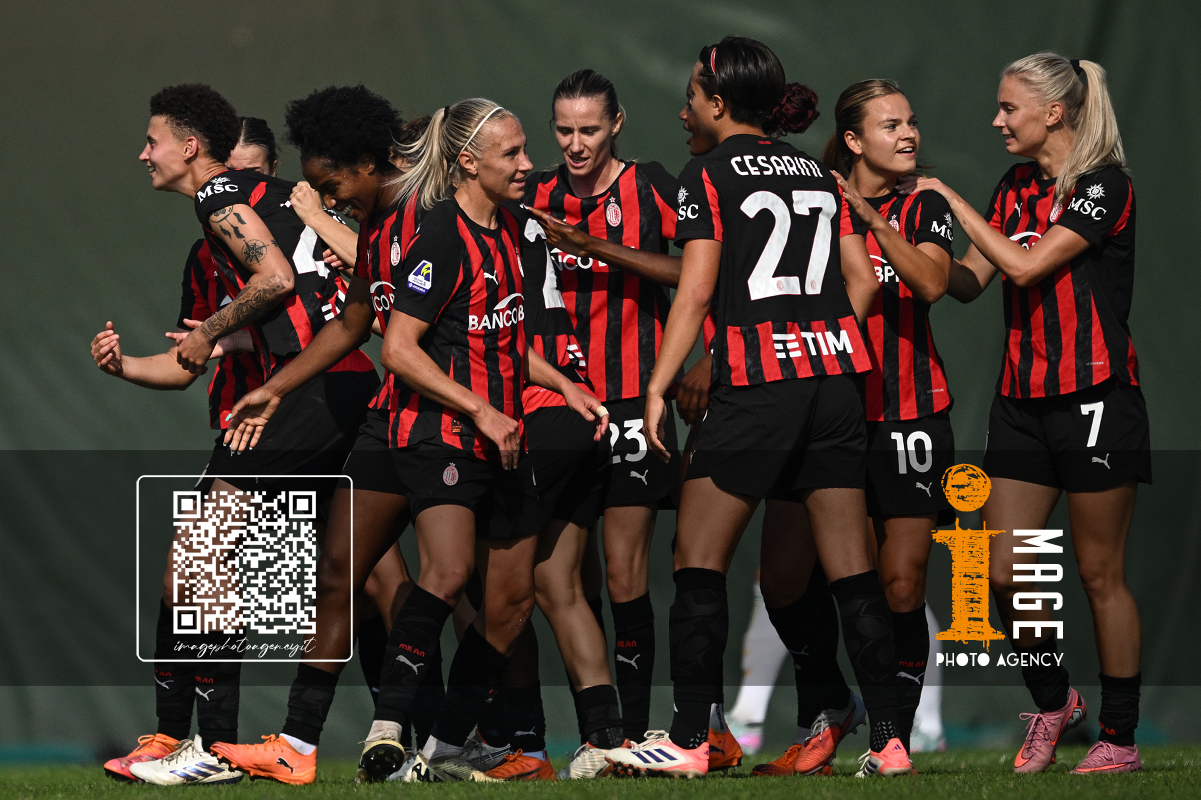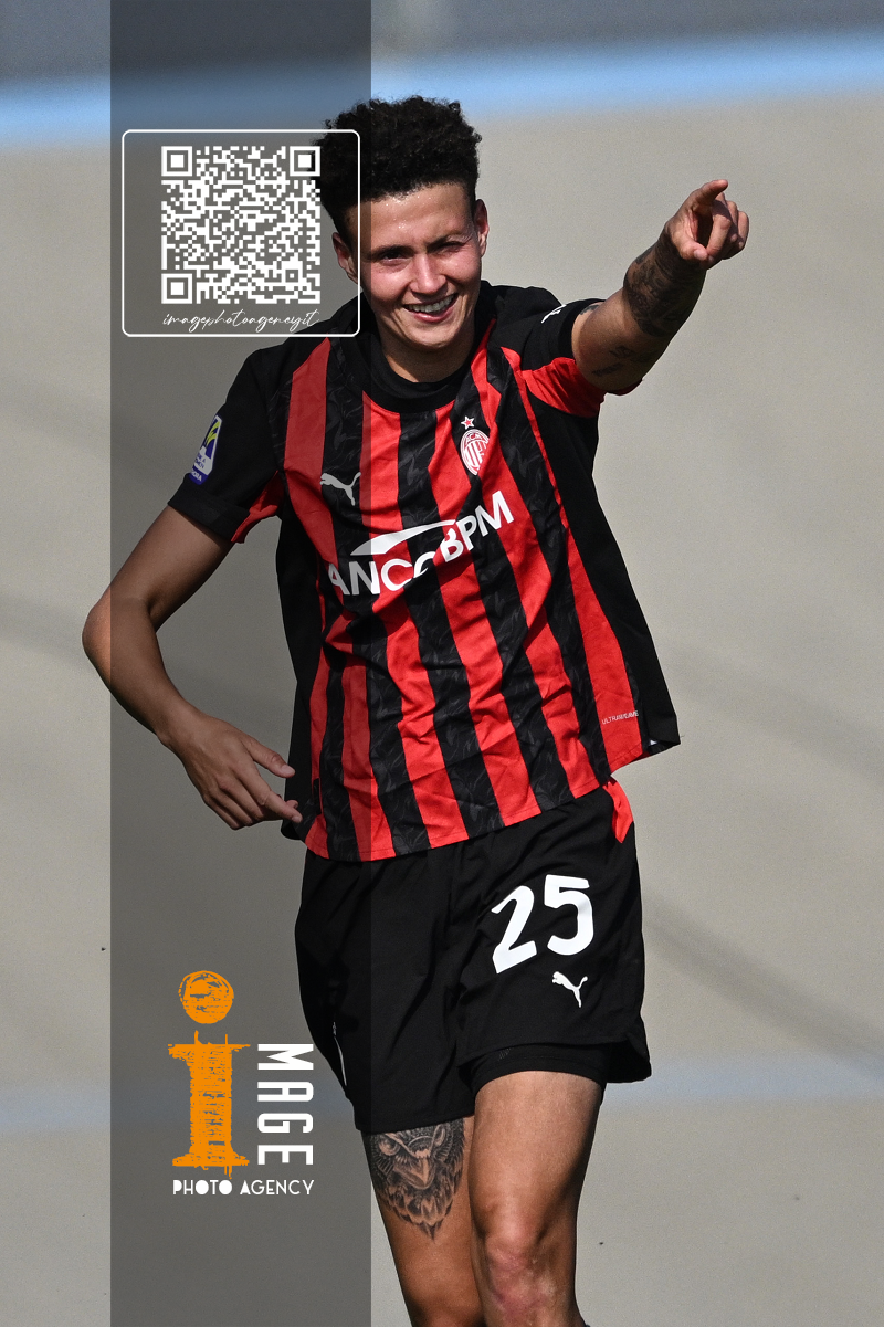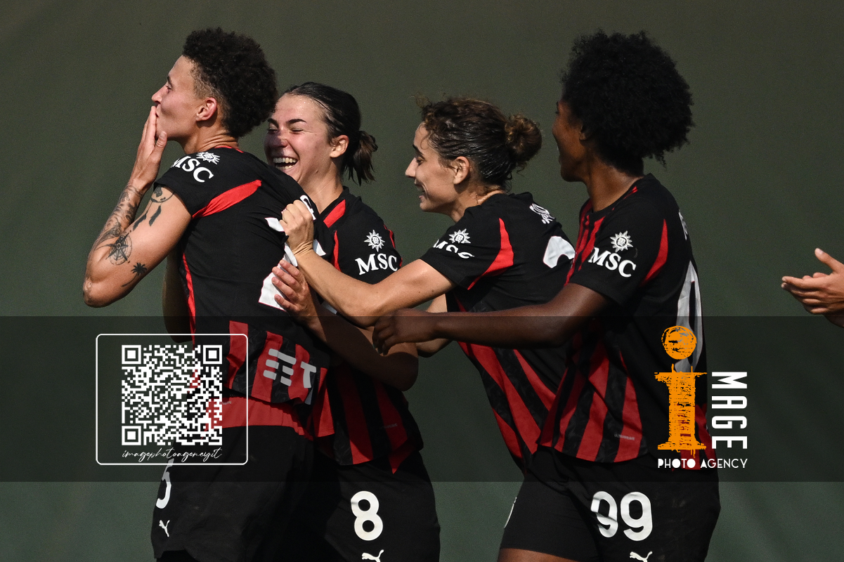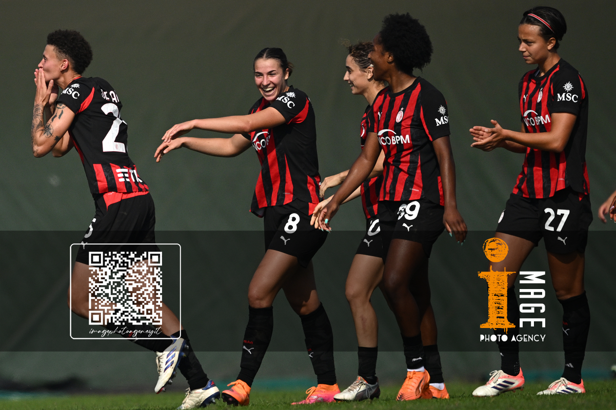 Mg Fiorenzuola 12/10/2025 - campionato di calcio serie A femminile / Milan-Roma / foto Matteo Gribaudi/Image Sport nella foto: esultanza gol Alice Corelli