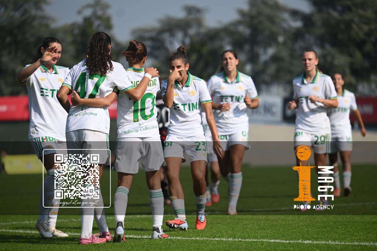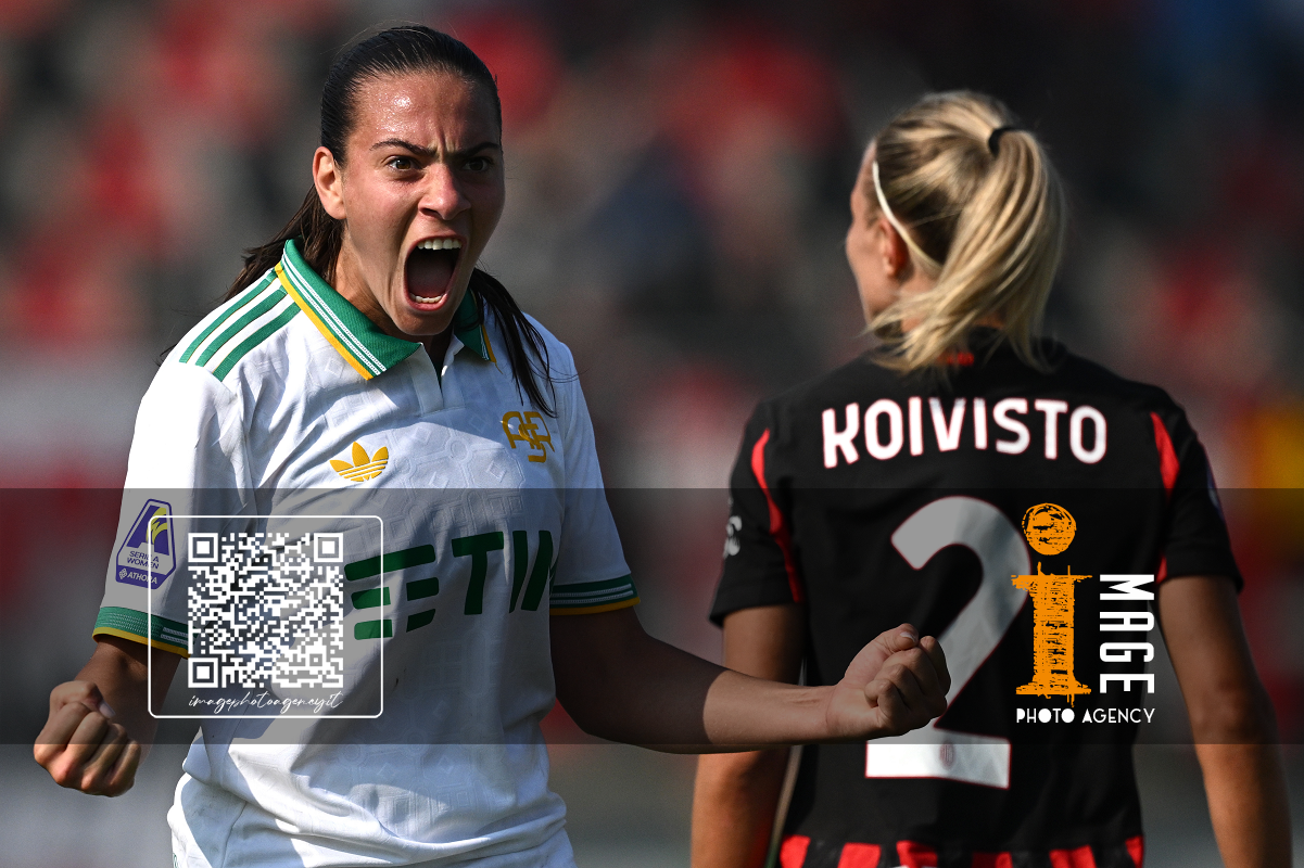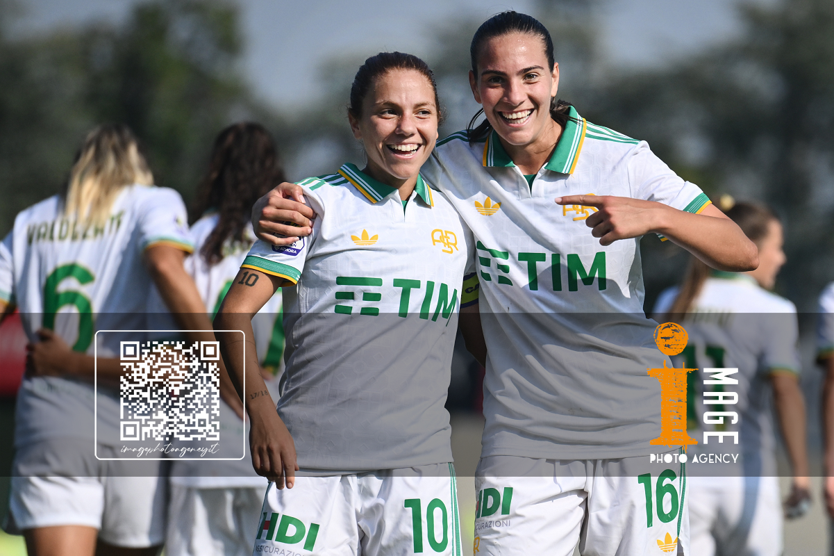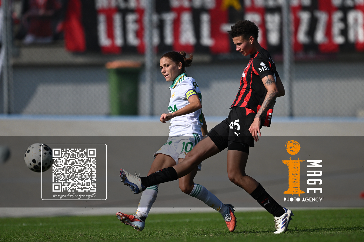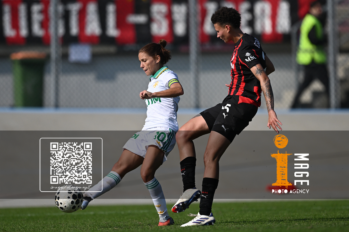 Mg Fiorenzuola 12/10/2025 - campionato di calcio serie A femminile / Milan-Roma / foto Matteo Gribaudi/Image Sport nella foto: Alice Corelli-Maria Cesarini