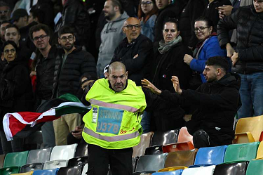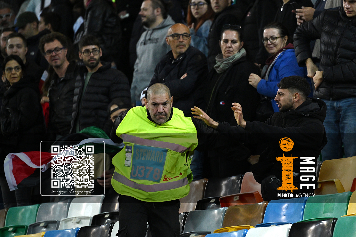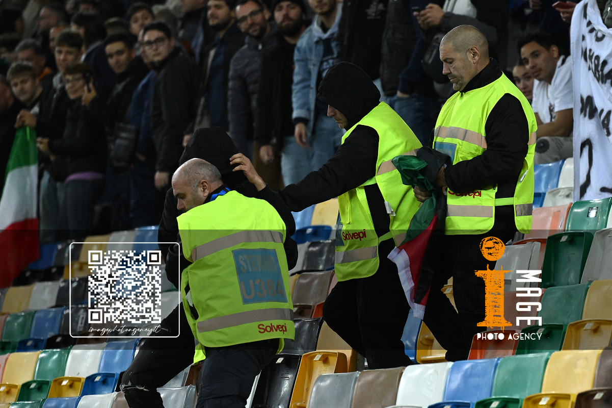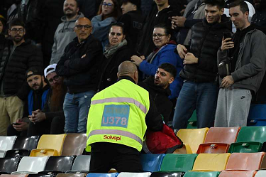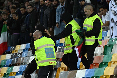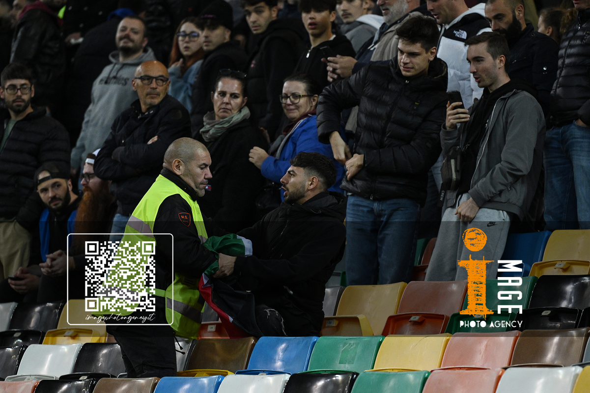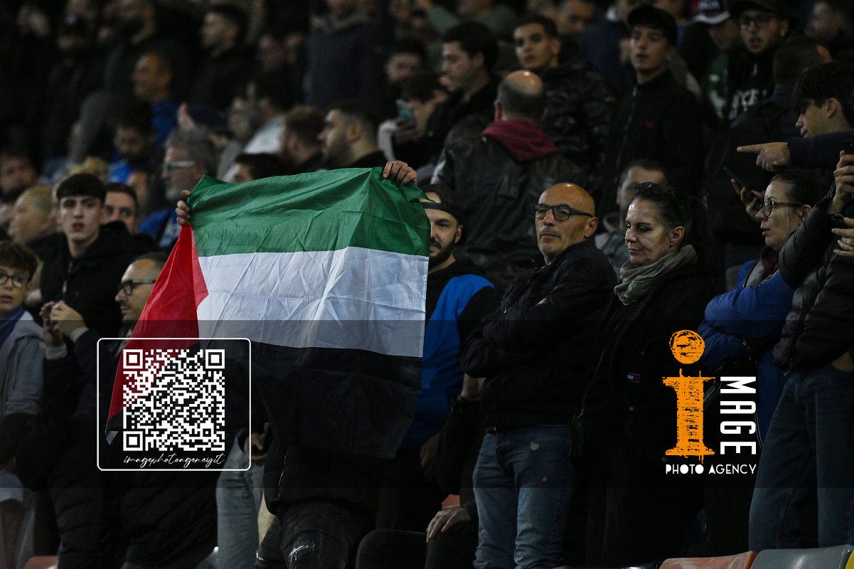 tifosi Italia con bandiera Palestina viene fermato dagli steward