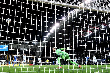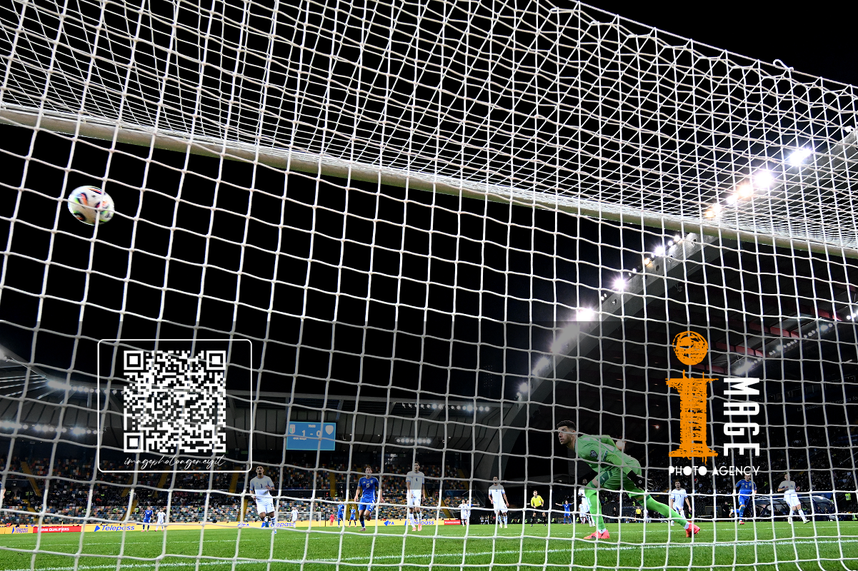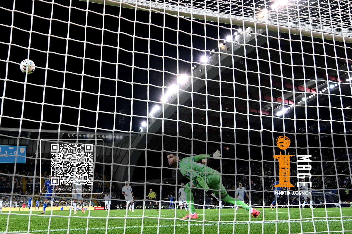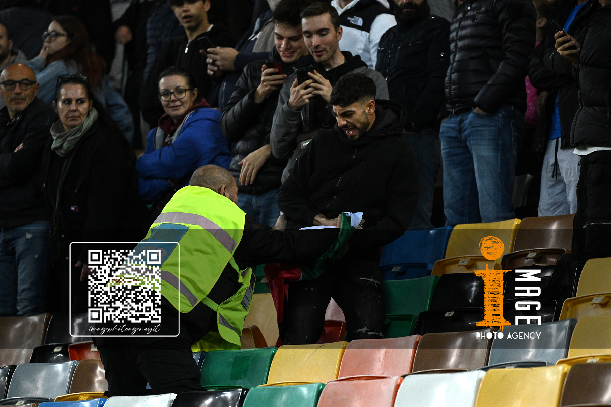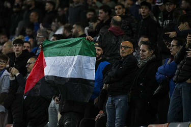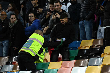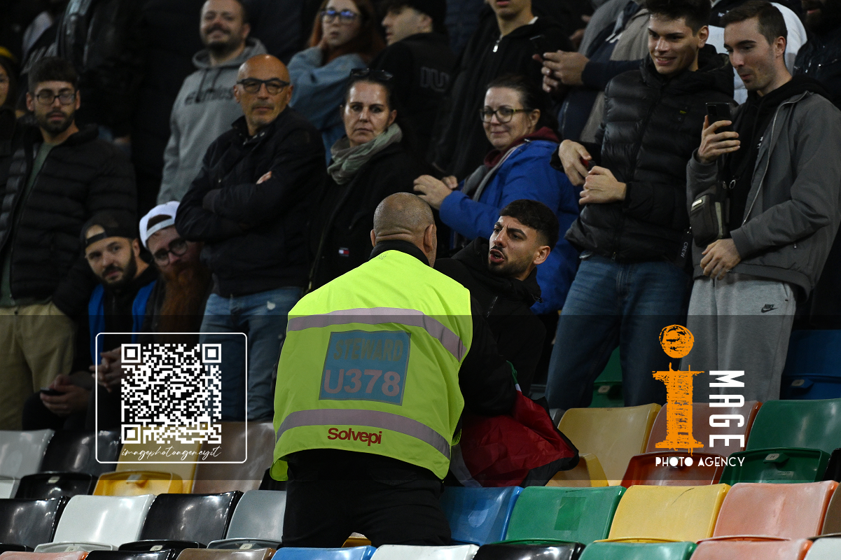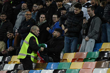 tifosi Italia con bandiera Palestina viene fermato dagli steward