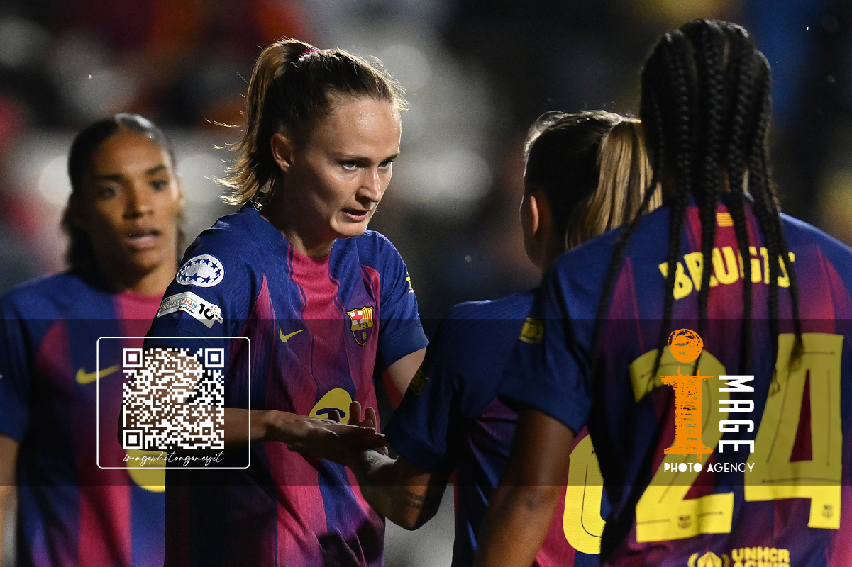 Dc Roma 15/10/2025 - Champions League femminile / Roma-Barcellona / foto Domenico Cippitelli/Image Sport nella foto: esultanza gol Caroline Graham Hansen