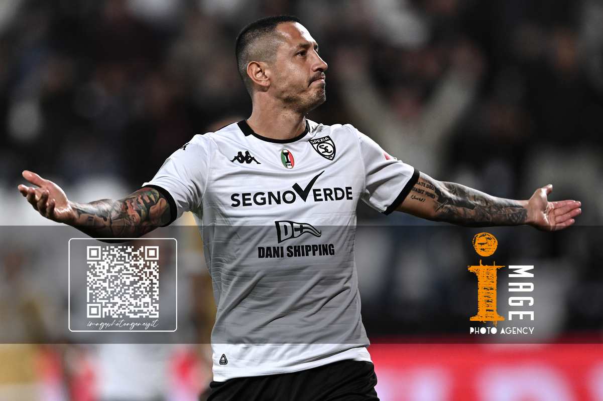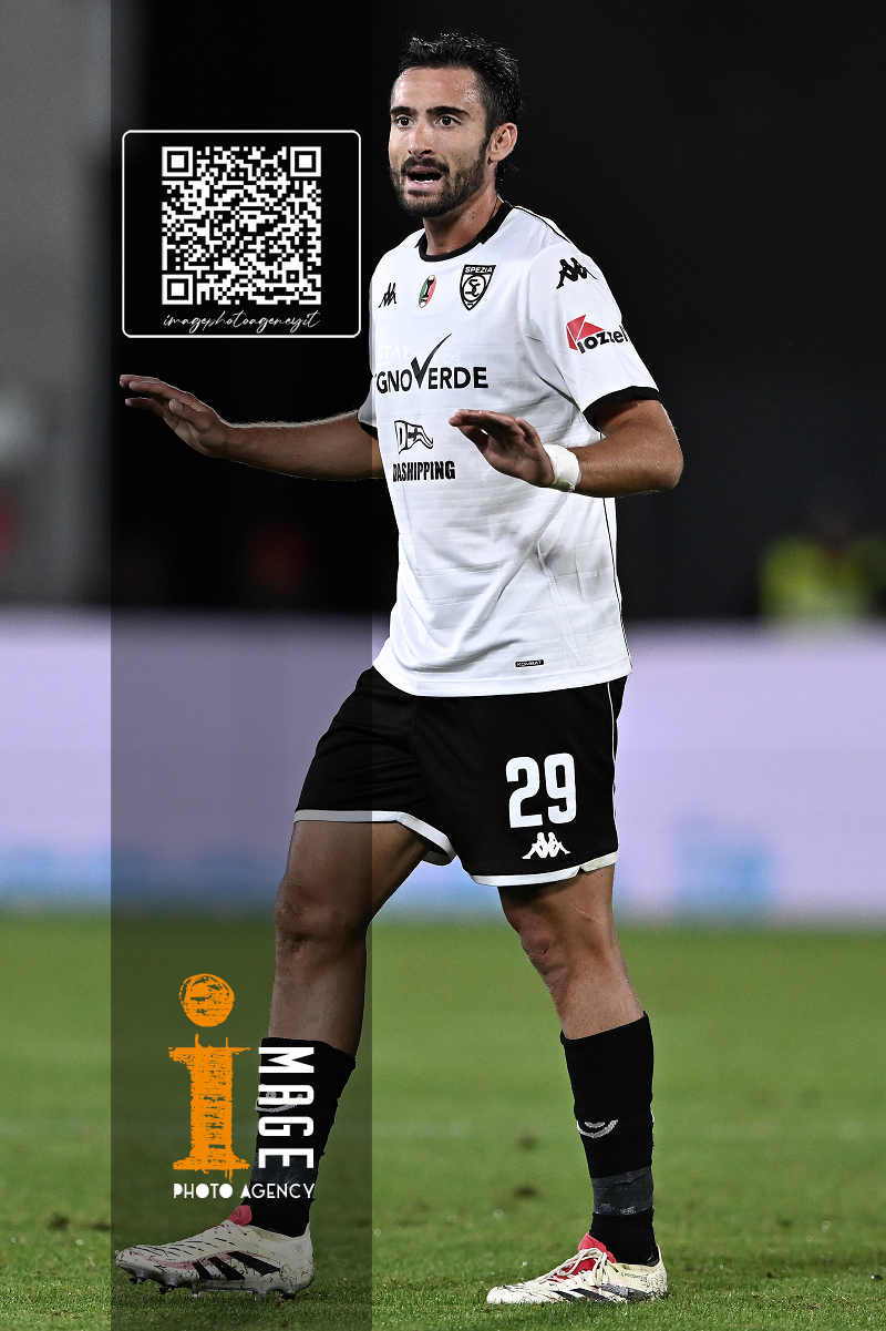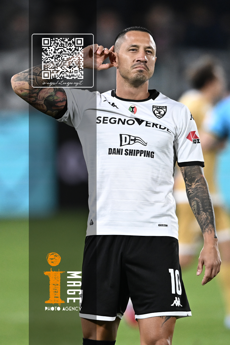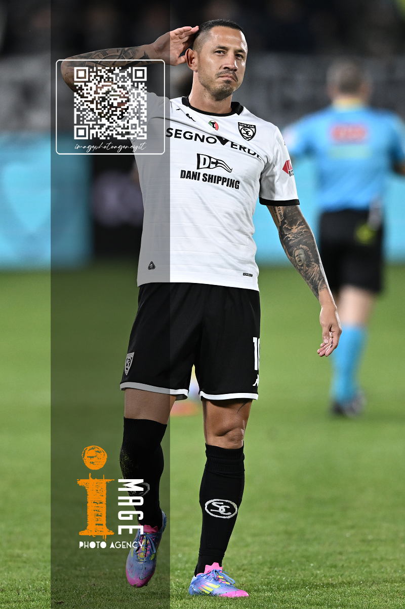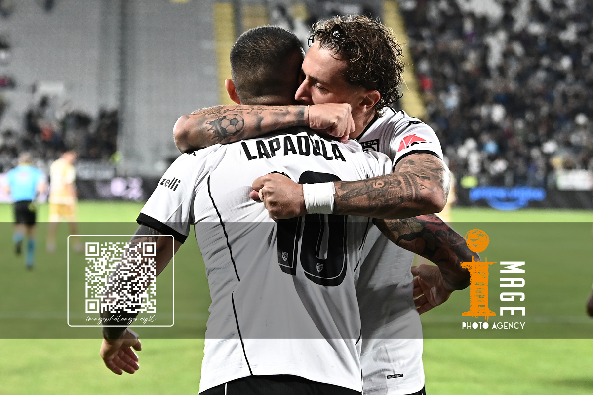 Mp La Spezia 18/10/2025 - campionato di calcio serie B / Spezia-Cesena / foto Matteo Papini/Image Sport nella foto: Gianluca Lapadula-Salvatore Esposito
