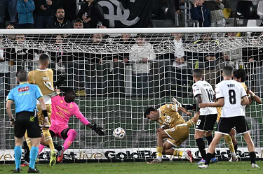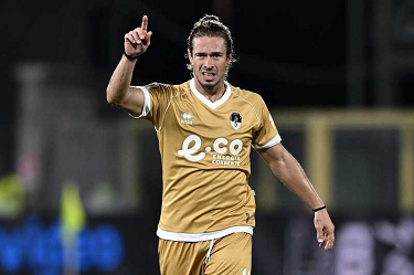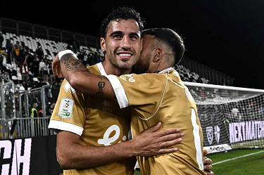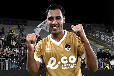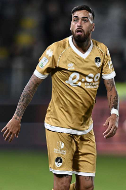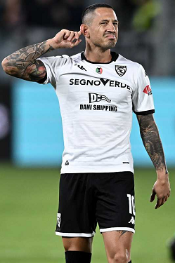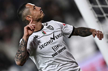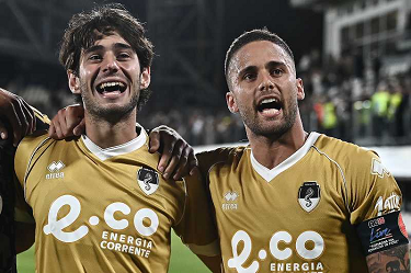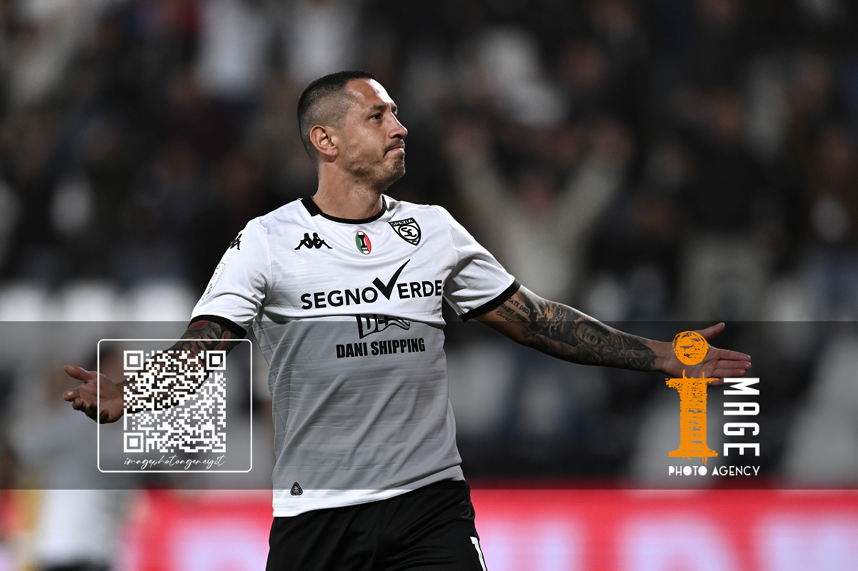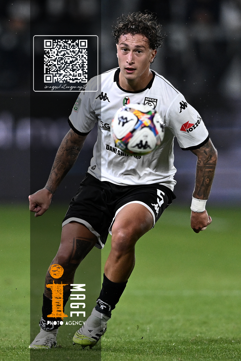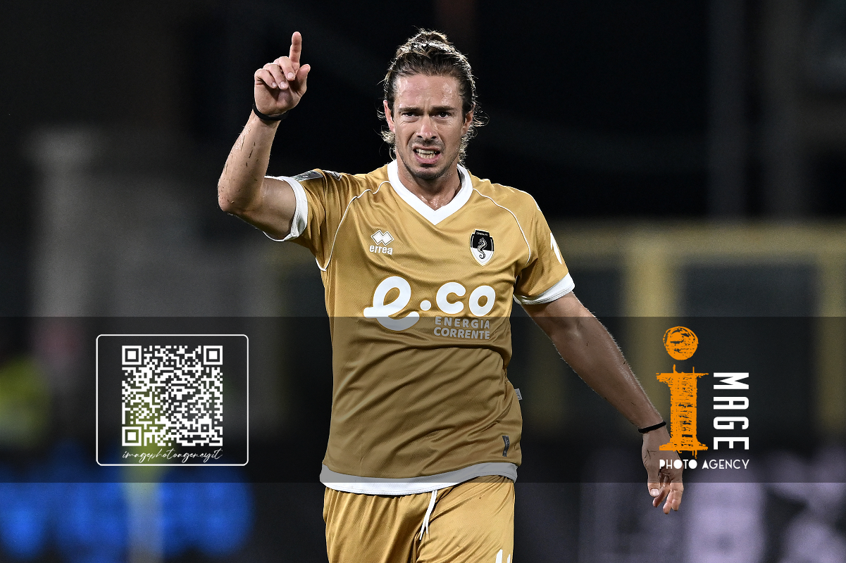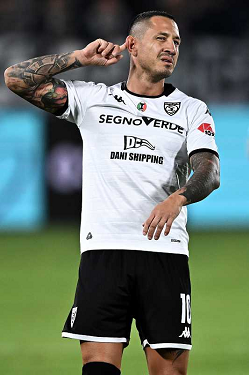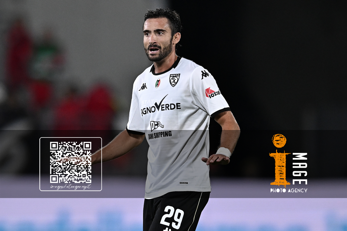 Mp La Spezia 18/10/2025 - campionato di calcio serie B / Spezia-Cesena / foto Matteo Papini/Image Sport nella foto: Gianluca Lapadula-Salvatore Esposito