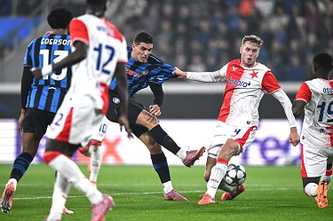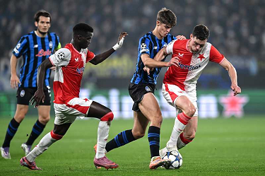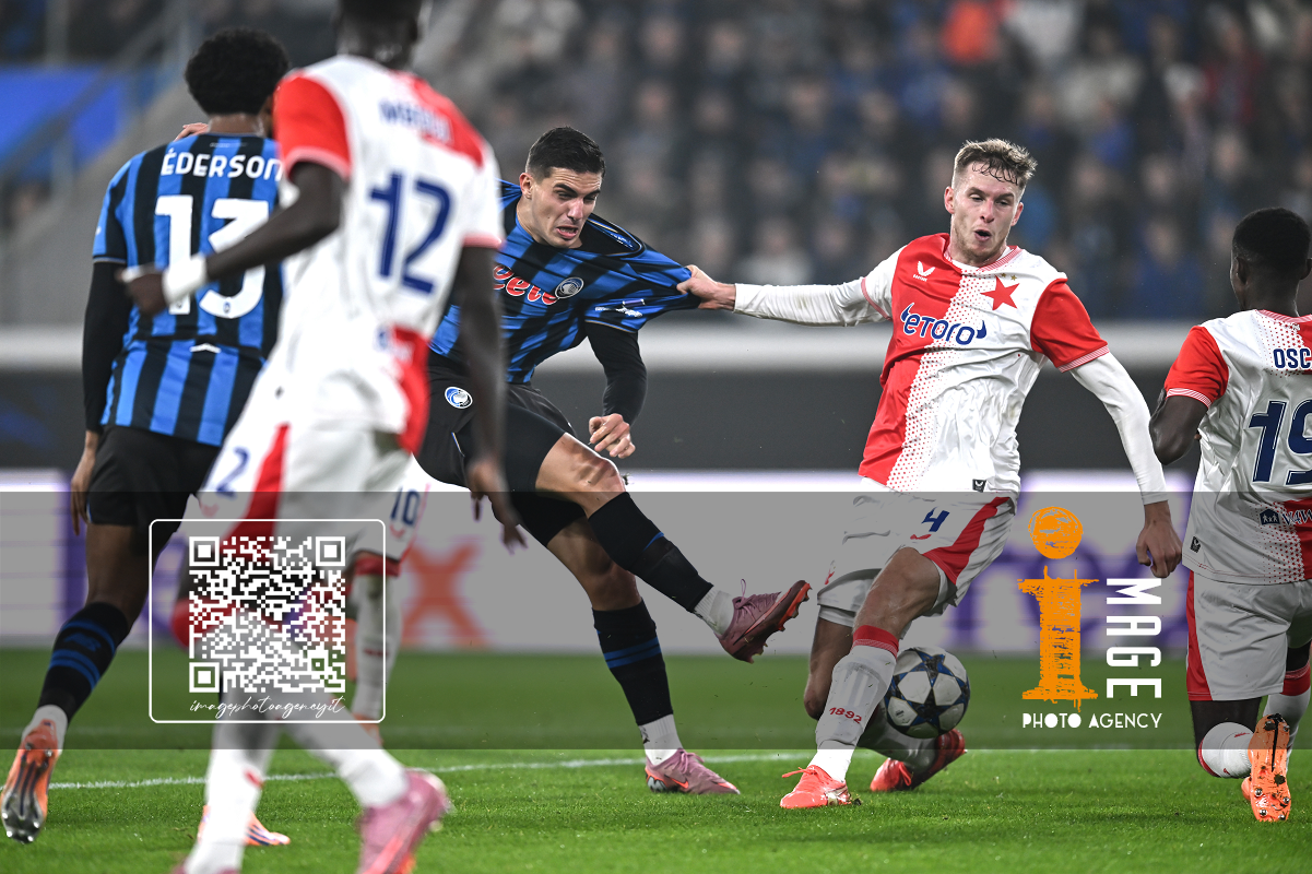Db Bergamo 22/09/2025 - Champions League / Atalanta-Slavia Praga / foto Daniele Buffa/Image Sport nella foto: Charles De Katelaere-Youssoupha Mbodji-Lukas Provod