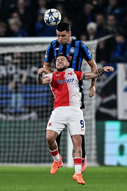 Db Bergamo 22/09/2025 - Champions League / Atalanta-Slavia Praga / foto Daniele Buffa/Image Sport nella foto: Nikola Krstovic-Jan Boril-Youssoupha Mbodji