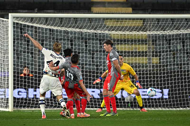 Cm Cremona 25/10/2025 - campionato di calcio serie A / Cremonese-Atalanta / foto Cristiano Mazzi/Image Sport nella foto: Nikola Krstovic-Federico Baschirotto