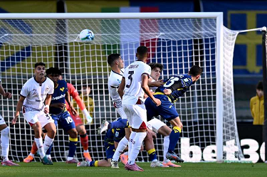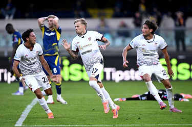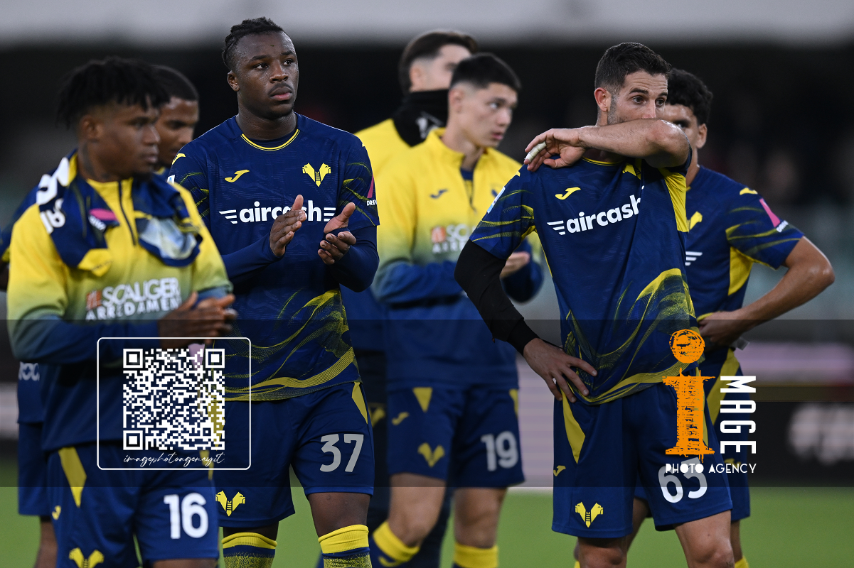 Db Verona 26/10/2025 - campionato di calcio serie A / Hellas Verona-Cagliari / foto Daniele Buffa/Image Sport nella foto: Gennaro Borrelli-Victor Nelsson-Armel Bella Kotchap