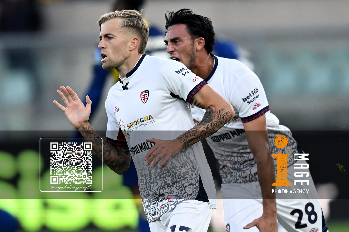 Db Verona 26/10/2025 - campionato di calcio serie A / Hellas Verona-Cagliari / foto Daniele Buffa/Image Sport nella foto: Leonardo Pavoletti-Victor Nelsson