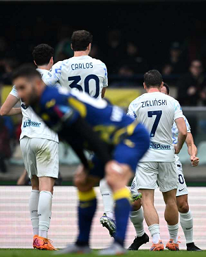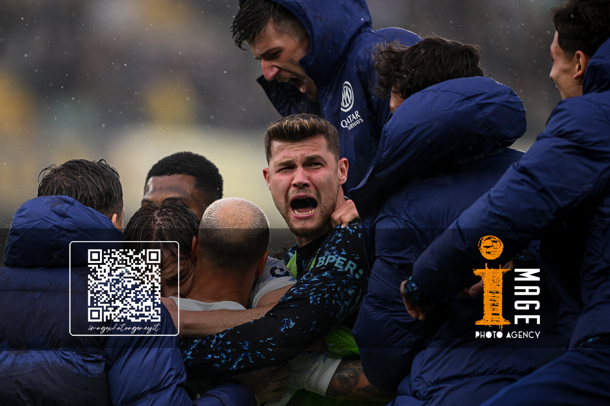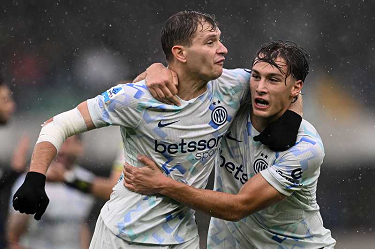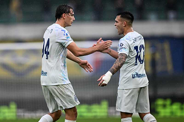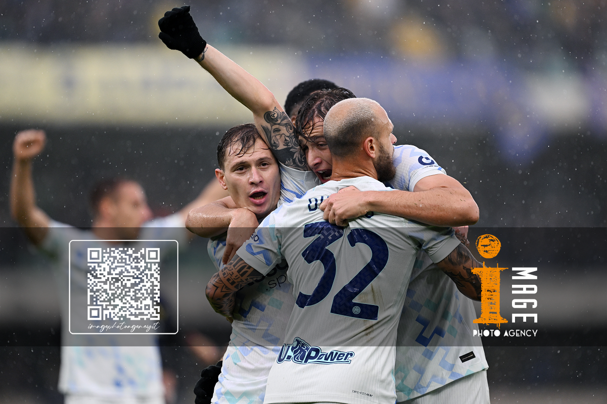 Mg Verona 02/11/2025 - campionato di calcio serie A / Hellas Verona-Inter / foto Daniele Buffa/Image Sport nella foto: esultanza Pio Esposito-Nicolo' Barella-Federico Dimarco