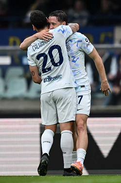 Mg Verona 02/11/2025 - campionato di calcio serie A / Hellas Verona-Inter / foto Matteo Gribaudi/Image Sport nella foto: Roberto Gagliardini-Hakan Calhanoglu