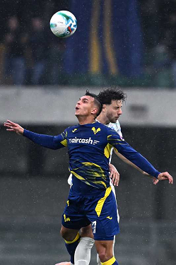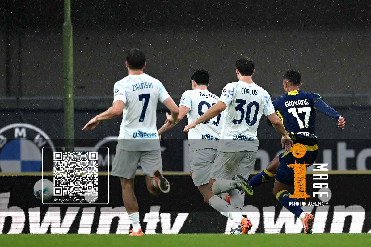 Mg Verona 02/11/2025 - campionato di calcio serie A / Hellas Verona-Inter / foto Matteo Gribaudi/Image Sport nella foto: Giovane Santana-Carlos Augusto