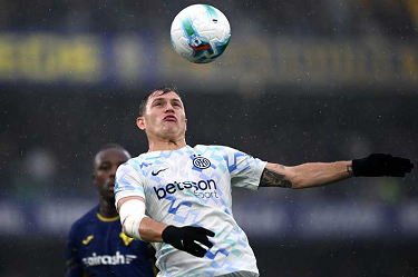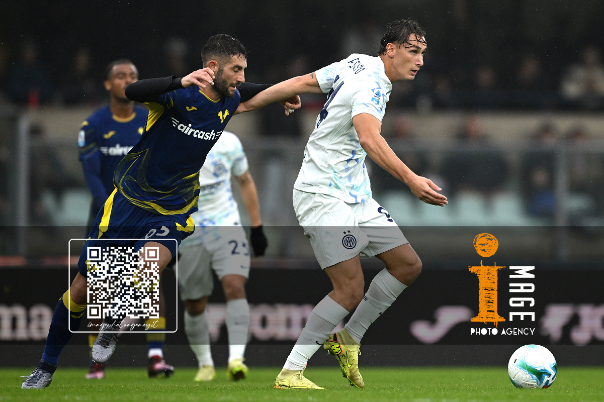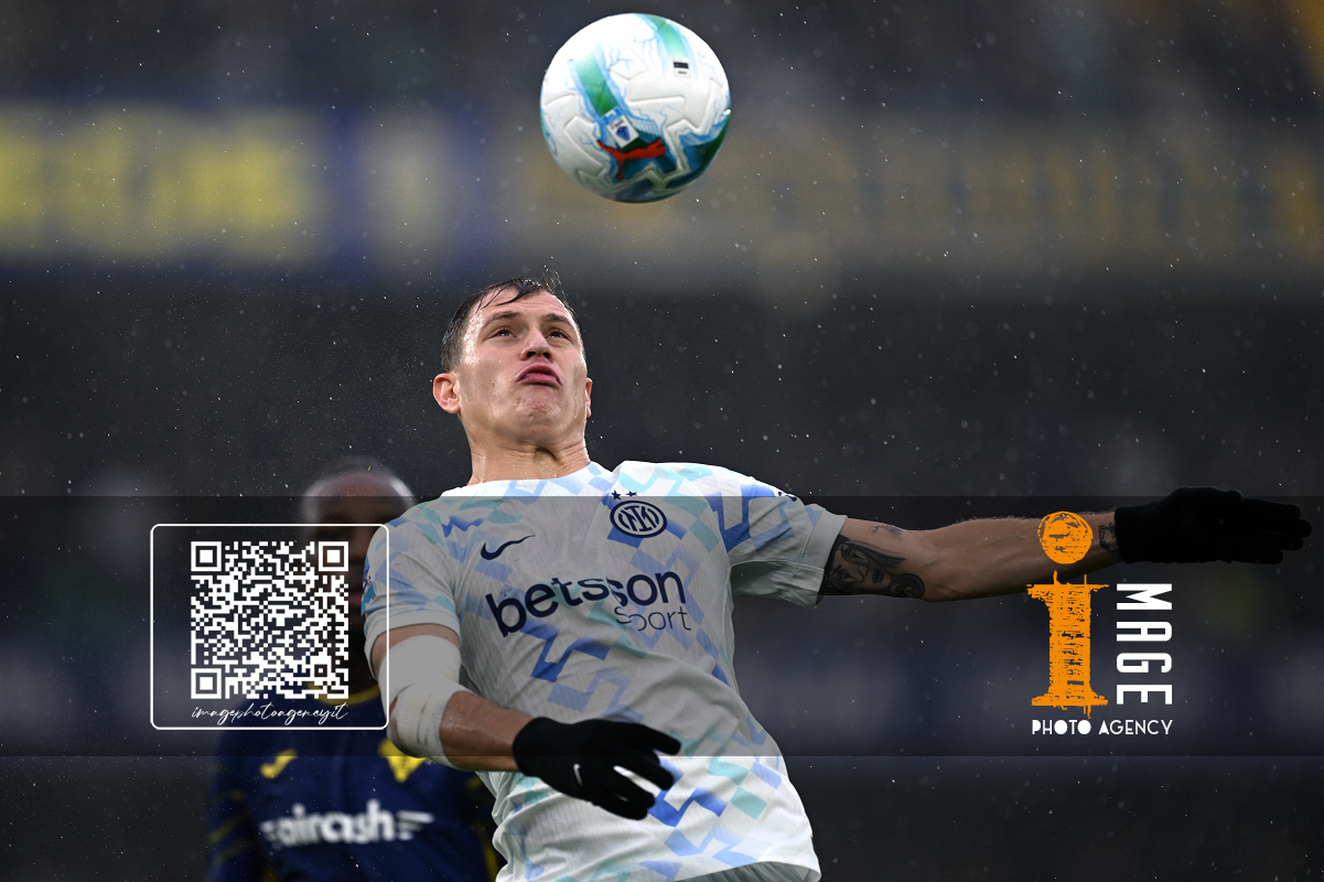 Mg Verona 02/11/2025 - campionato di calcio serie A / Hellas Verona-Inter / foto Matteo Gribaudi/Image Sport nella foto: Pio Esposito-Federico Dimarco-Nicolo' Barella