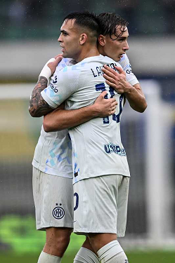 Mg Verona 02/11/2025 - campionato di calcio serie A / Hellas Verona-Inter / foto Daniele Buffa/Image Sport nella foto: esultanza Nicolo' Barella-Pio Esposito