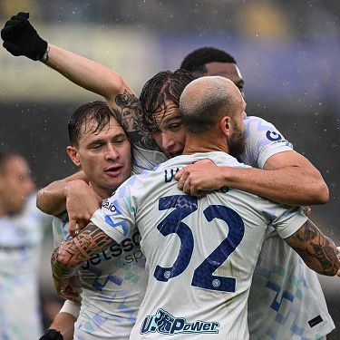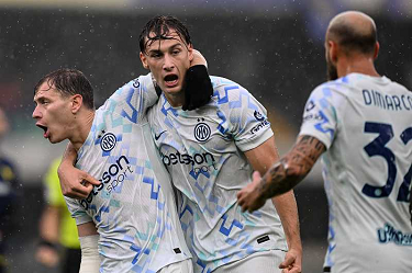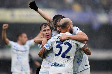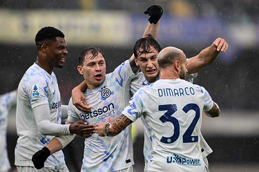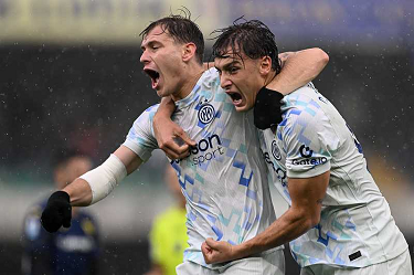 esultanza Pio Esposito-Nicolo' Barella-Federico Dimarco-Denzel Dumfries