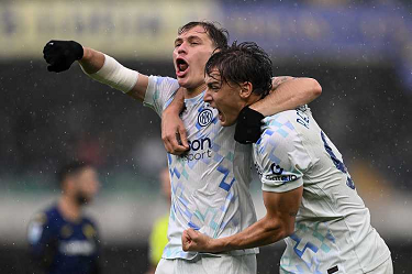 esultanza Pio Esposito-Nicolo' Barella-Federico Dimarco