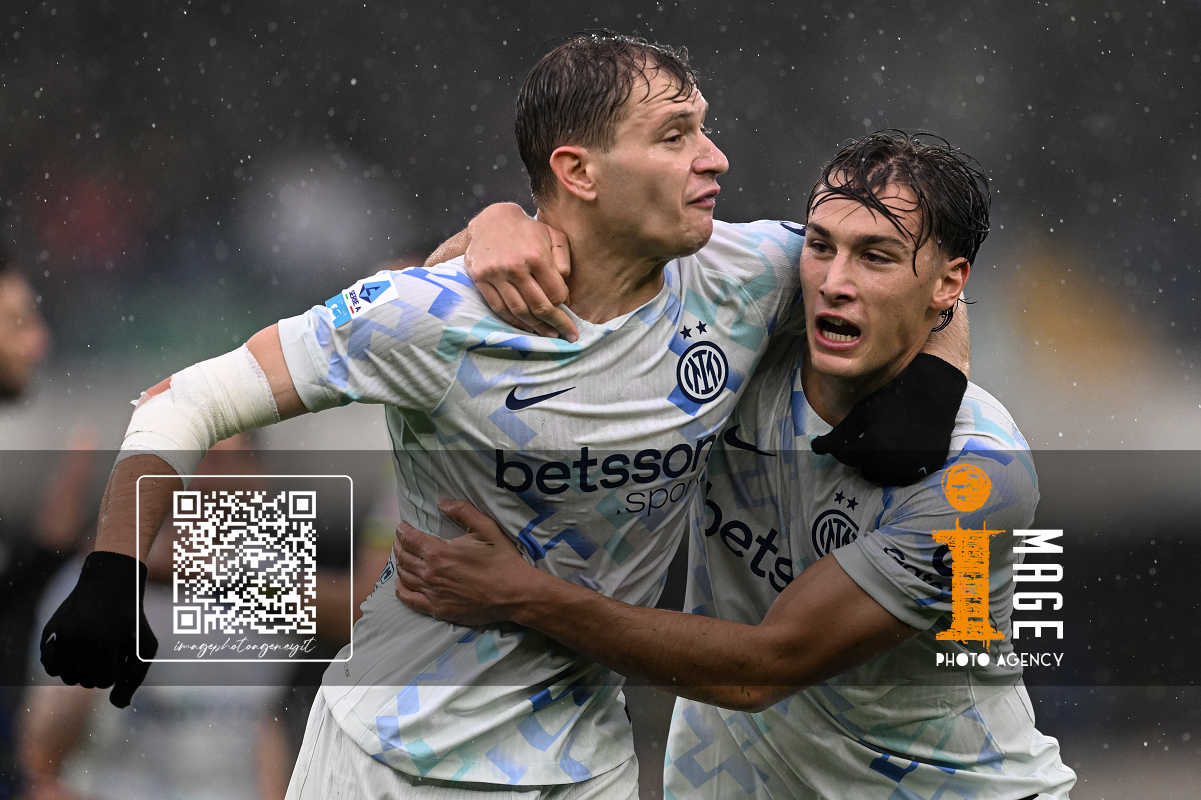 Mg Verona 02/11/2025 - campionato di calcio serie A / Hellas Verona-Inter / foto Daniele Buffa/Image Sport nella foto: esultanza Pio Esposito-Nicolo' Barella