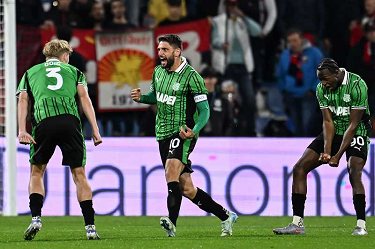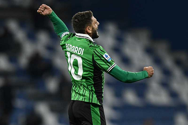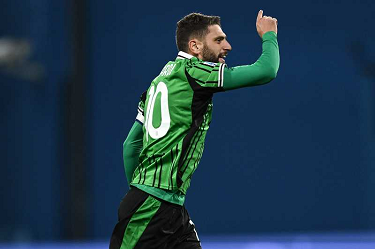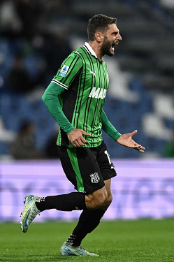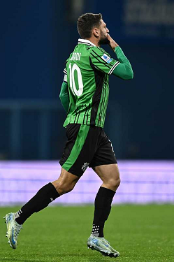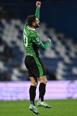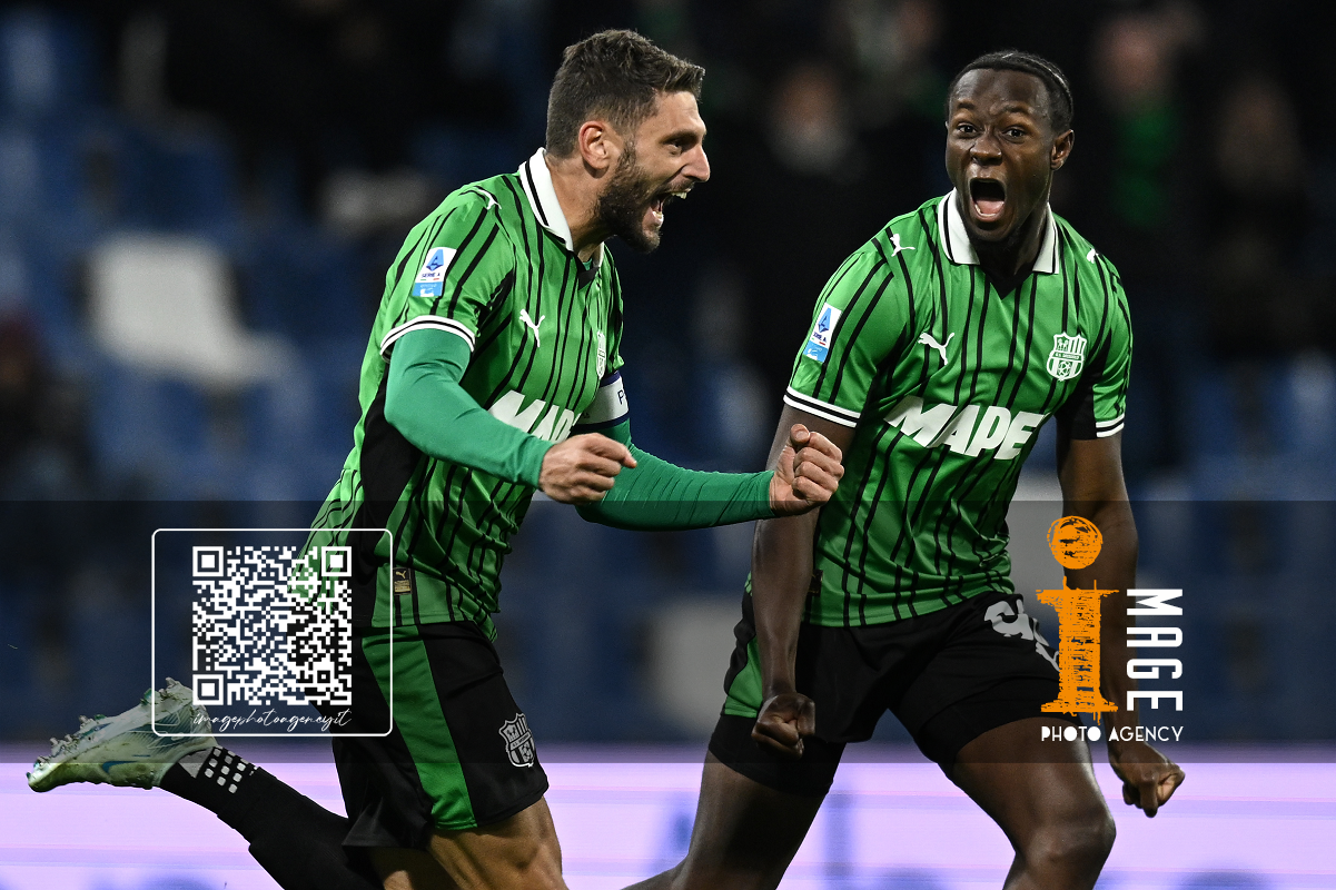 Fp Reggio Emilia 03/11/2025 - campionato di calcio serie A / Sassuolo-Genoa / foto Fabrizio Patrucco/Image Sport nella foto: esultanza gol Domenico Berardi