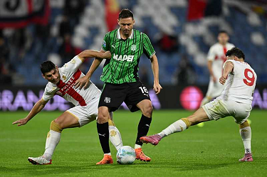 Fp Reggio Emilia 03/11/2025 - campionato di calcio serie A / Sassuolo-Genoa / foto Fabrizio Patrucco/Image Sport nella foto: Nemanja Matic-Ruslan Malinovskyi-Vitinha