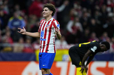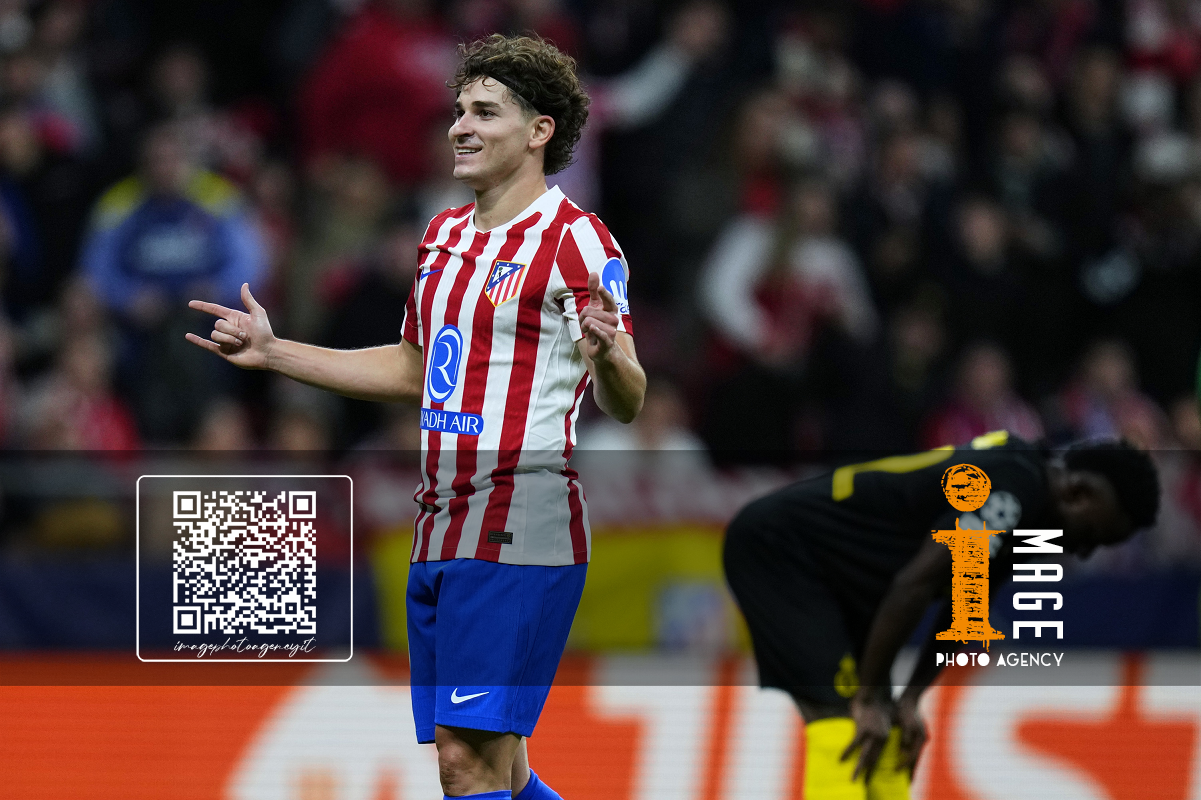 Pre Madrid 05/11/2025 - Champions League / Atletico Madrid-Union Saint Gilloise / foto Pressinphoto/Image Sport nella foto: esultanza gol Julian Alvarez