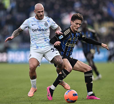 Mp Pisa 30/11/2025 - campionato di calcio serie A / Pisa-Inter / foto Matteo Papini/Image Sport nella foto: Gabriele Piccinini-Alessandro Bastoni-Idrissa Toure'
