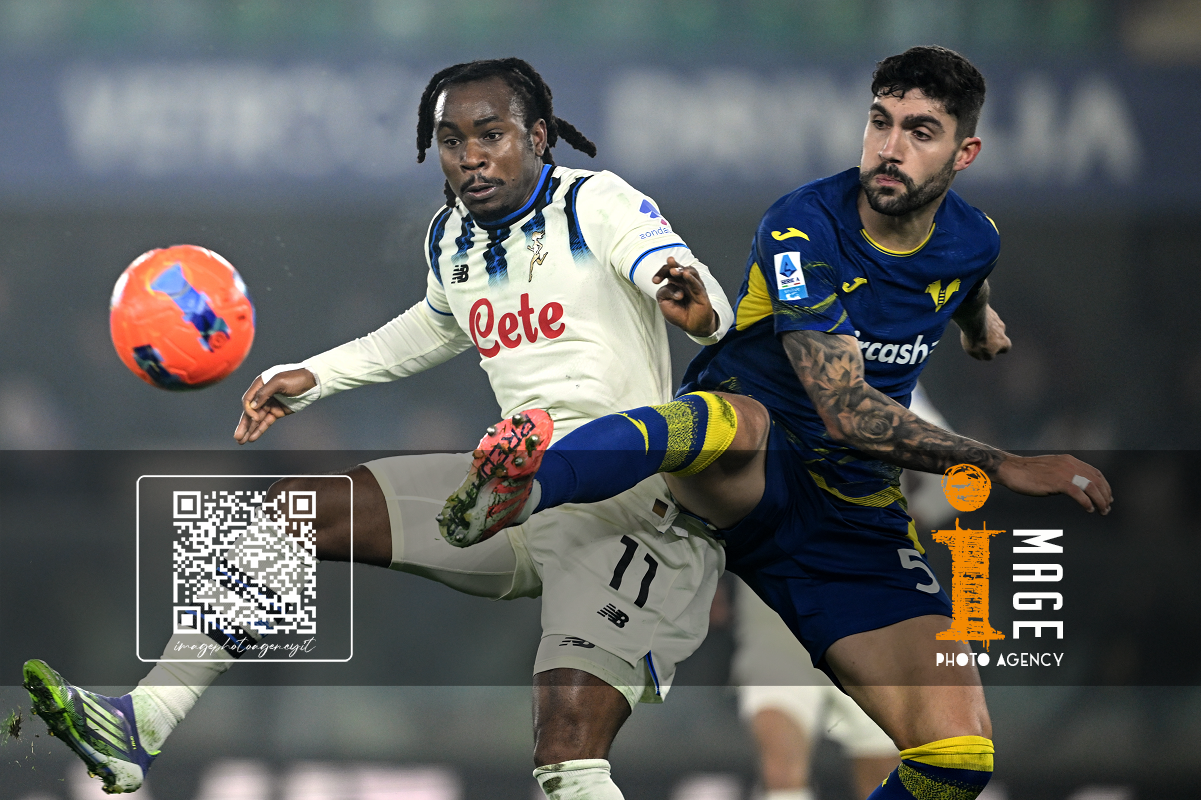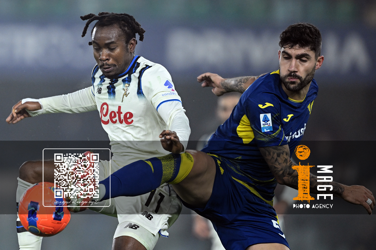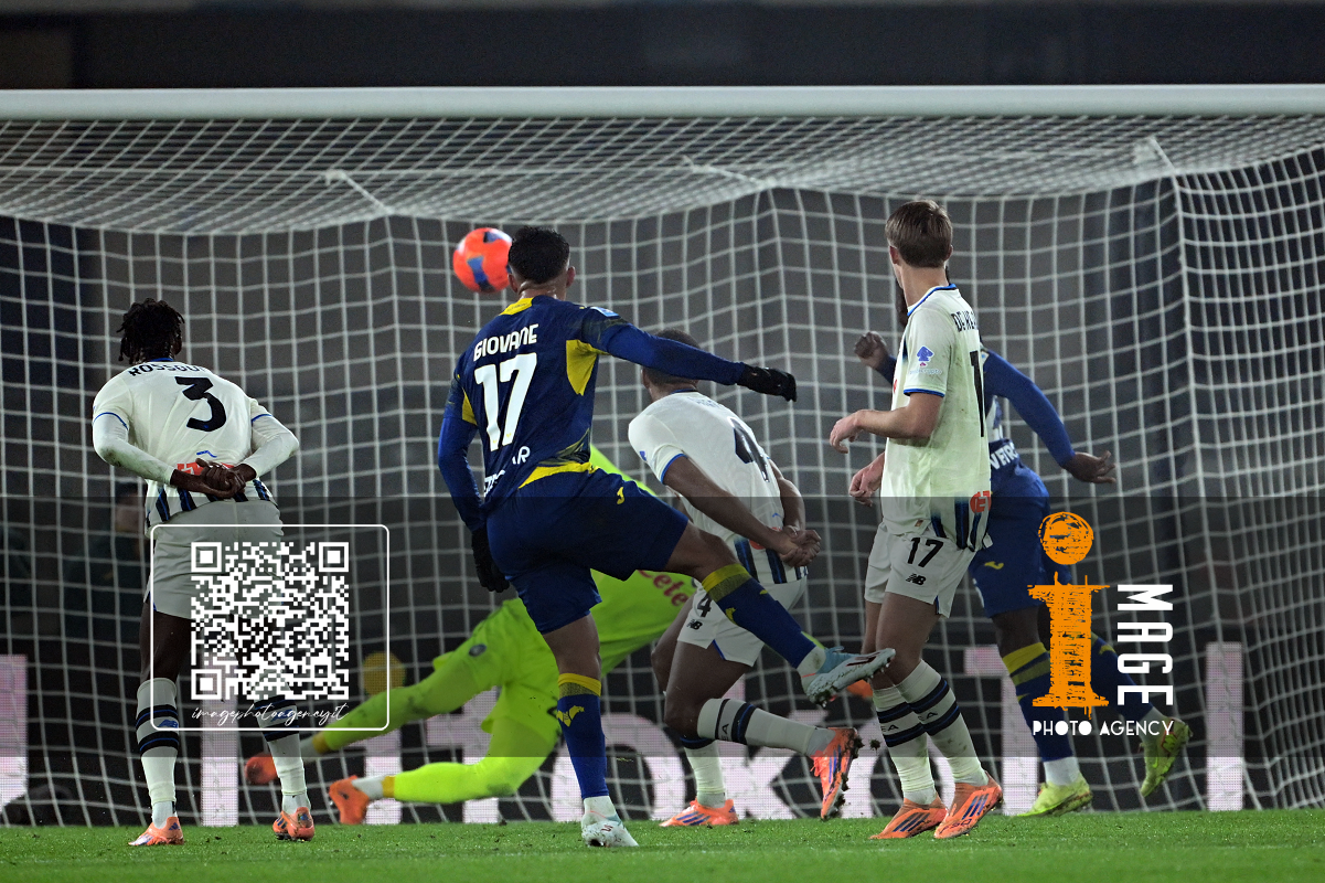 Cm Verona 06/12/2025 - campionato di calcio serie A / Hellas Verona-Atalanta / foto Cristiano Mazzi/Image Sport nella foto: Nikola Krstovic-Victor Nelsson