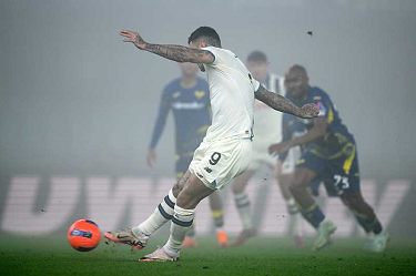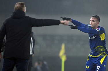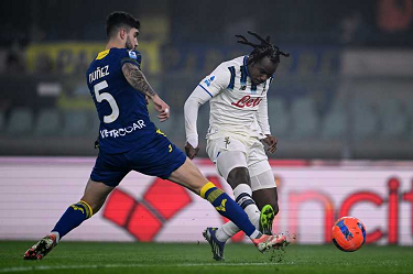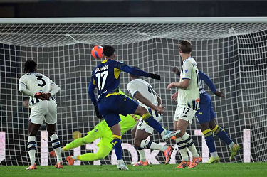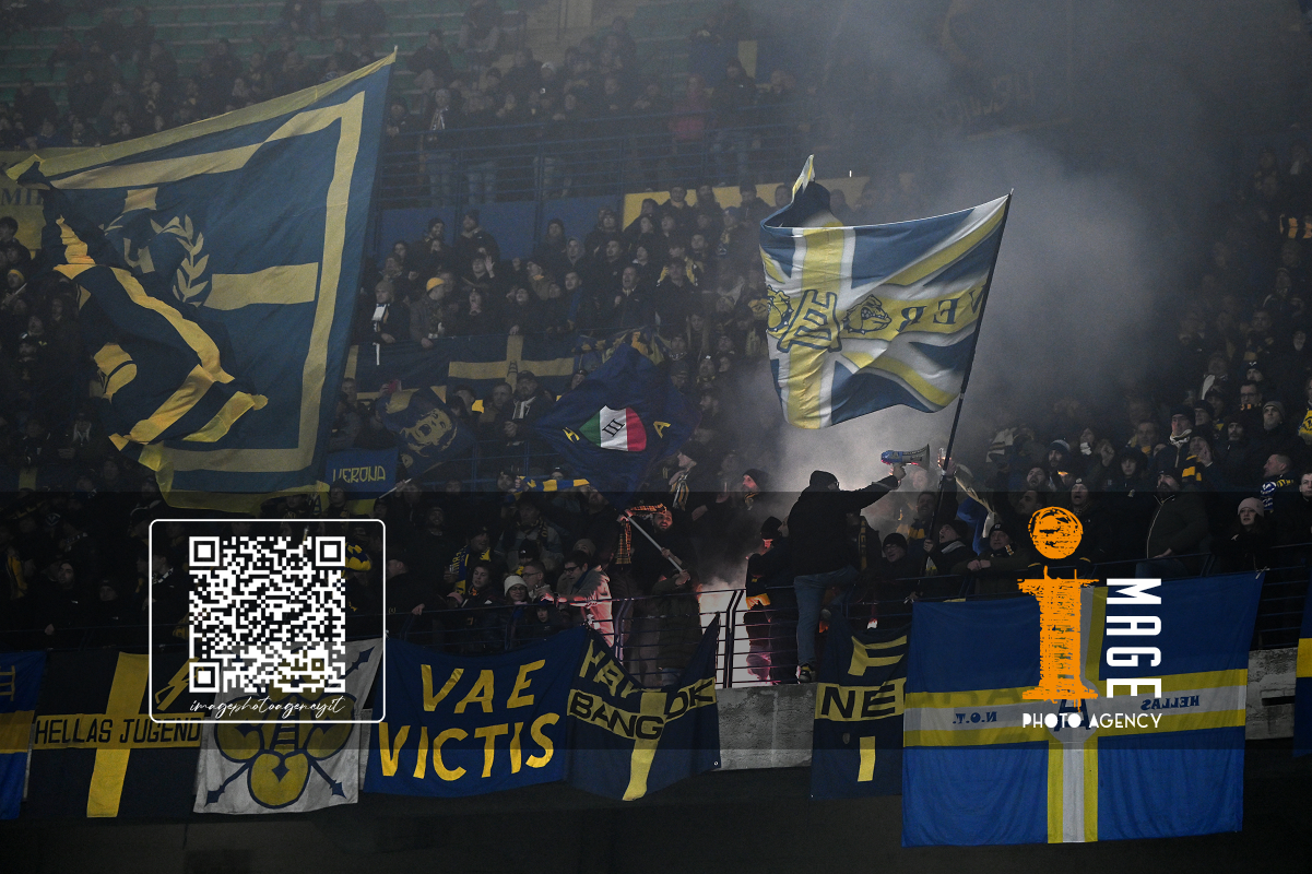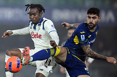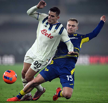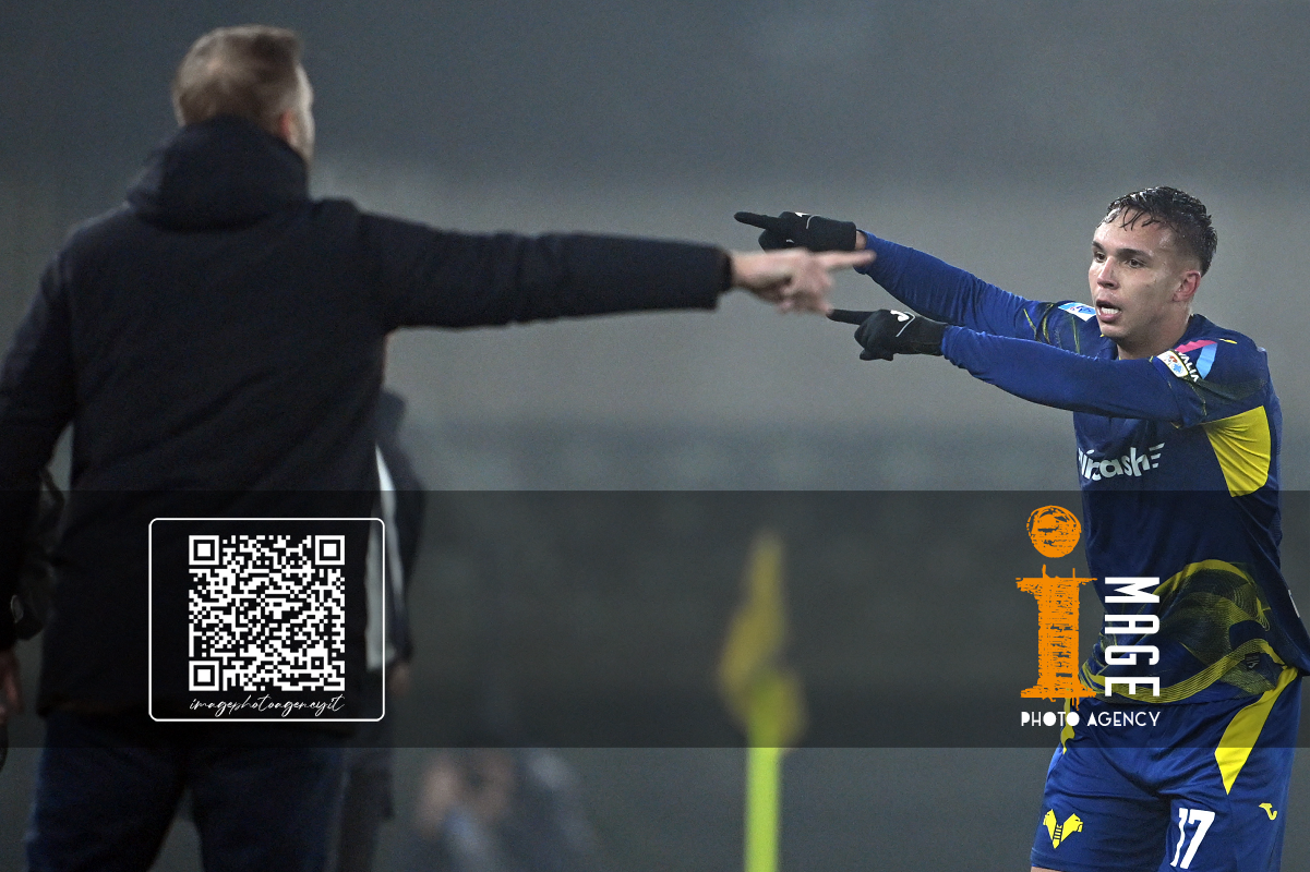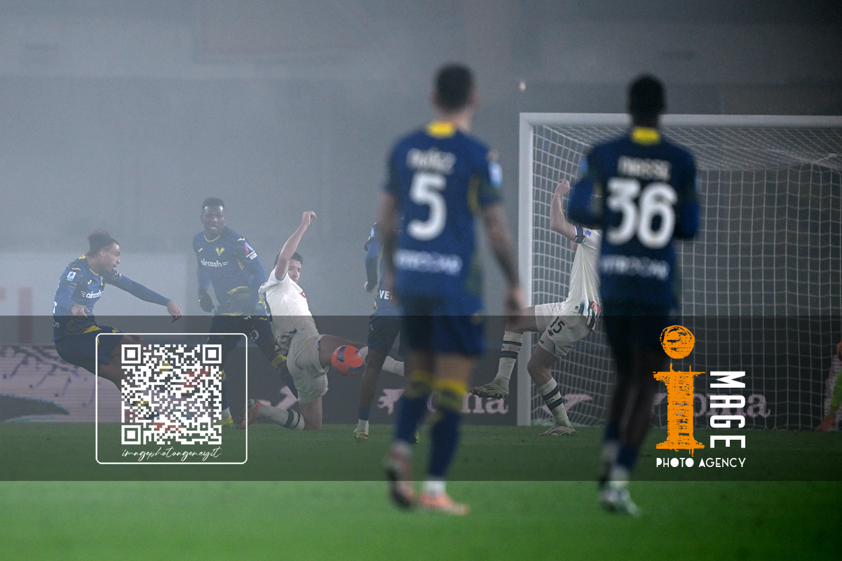 Cm Verona 06/12/2025 - campionato di calcio serie A / Hellas Verona-Atalanta / foto Cristiano Mazzi/Image Sport nella foto: Nikola Krstovic-Victor Nelsson