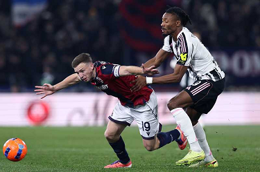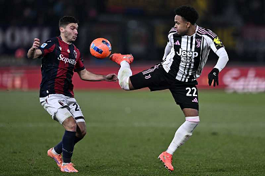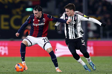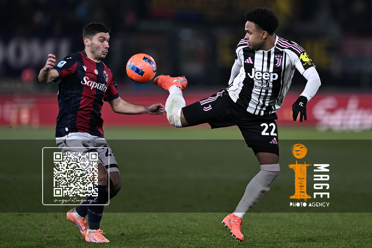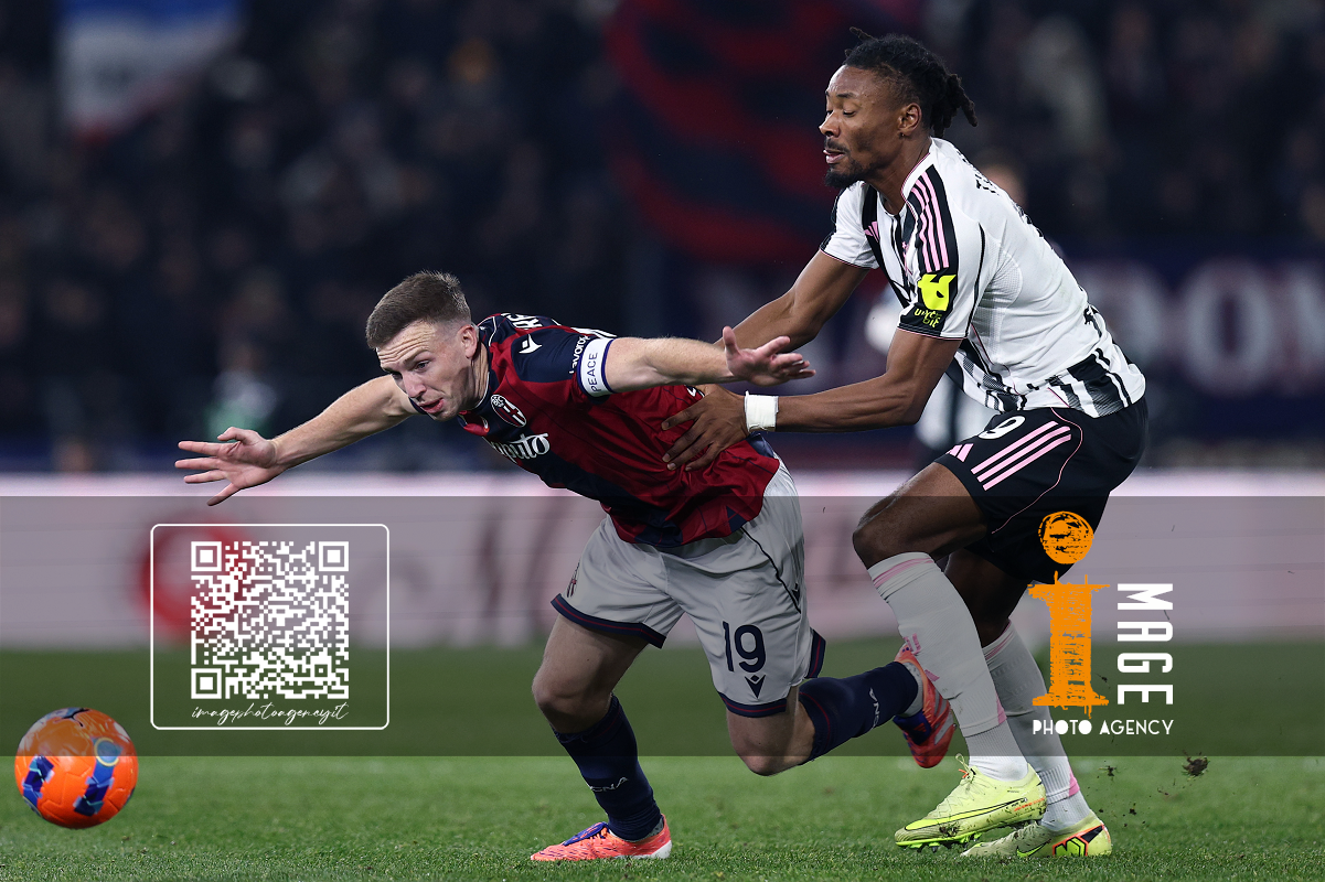 Mp Bologna 14/12/2025 - campionato di calcio serie A / Bologna-Juventus / foto Matteo Papini/Image Sport nella foto: Teun Koopmeiners-Riccardo Orsolini
