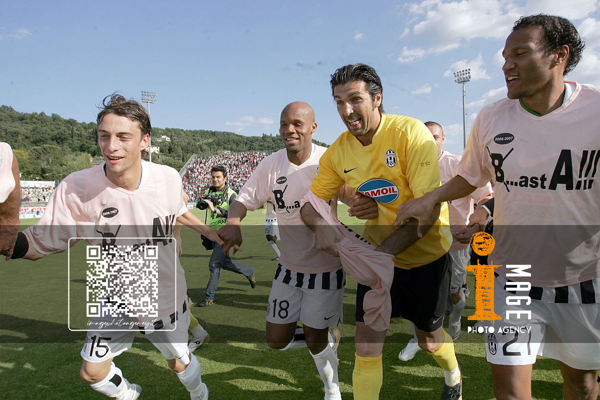 Gm Arezzo 19/05/2007 - campionato di calcio serie B / Arezzo-Juventus / foto Gabriele Maltinti/Image Sport nella foto: Gianluigi Buffon-Claudio Marchisio-Jonathan Zebina