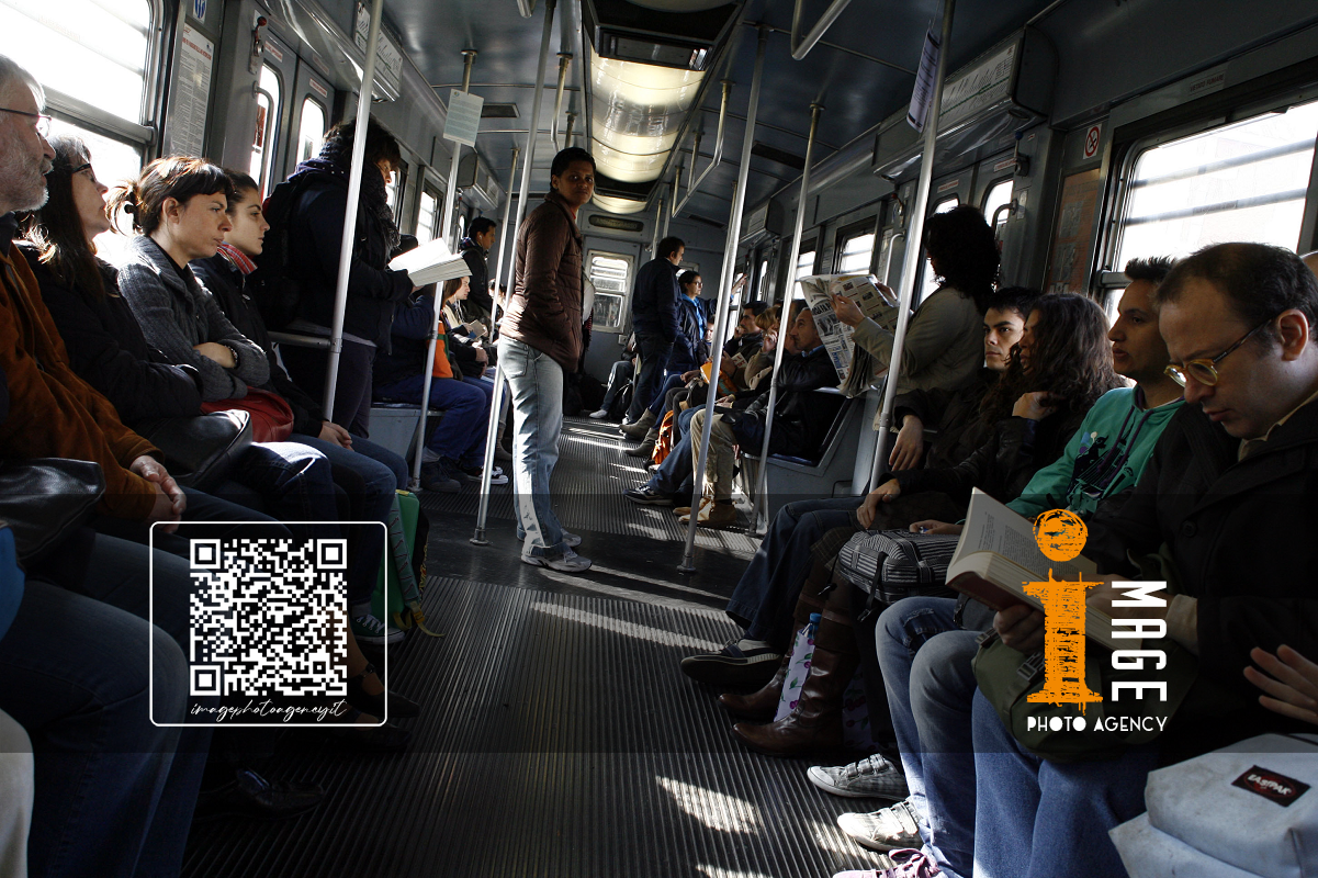 Cp Milano 19/10/2009 - sciopero mezzi pubblici / foto Claudio Passiu/Image nella foto: treno e passeggeri sul binario della stazione Centrale Ferrovie dello Stato a Milano